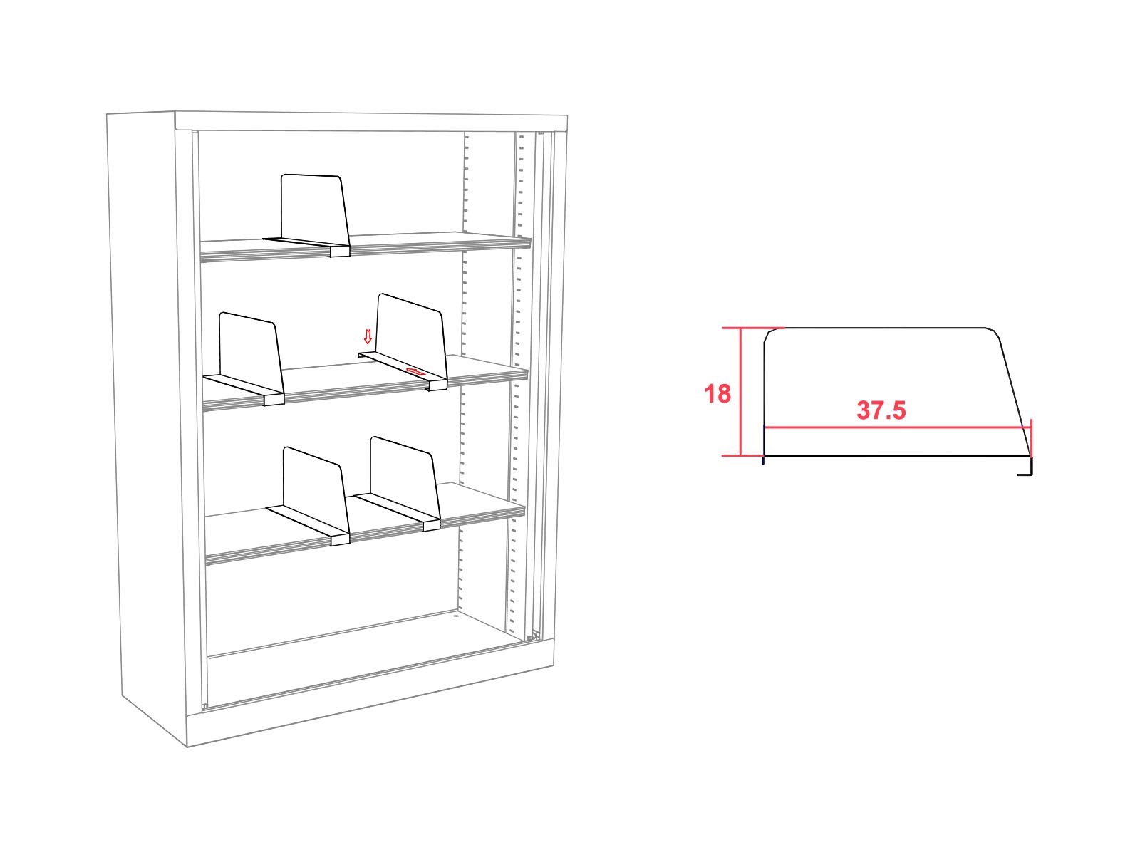 Très utiles pour maintenir en place les documents et classeurs, ces séparateurs se clipsent sur les étagères métalliques d'épaisseur 25mm.
