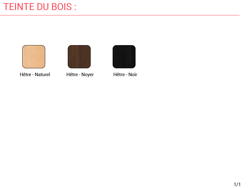 bois massif de hêtre dans une teinte naturel, effet noyer ou noir.