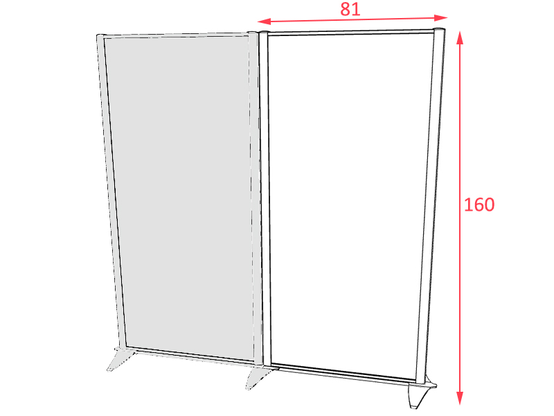 Cette cloison additionnelle vient en complément de la cloison de départ KP+ afin de créer des cloisons plus larges. Elle comprend un panneau et un seul pied stabilisateur, ou pied à roulettes, qui complètera l'ensemble afin de former des panneaux de largeur 162 cm, 243 cm, 324 cm, etc.