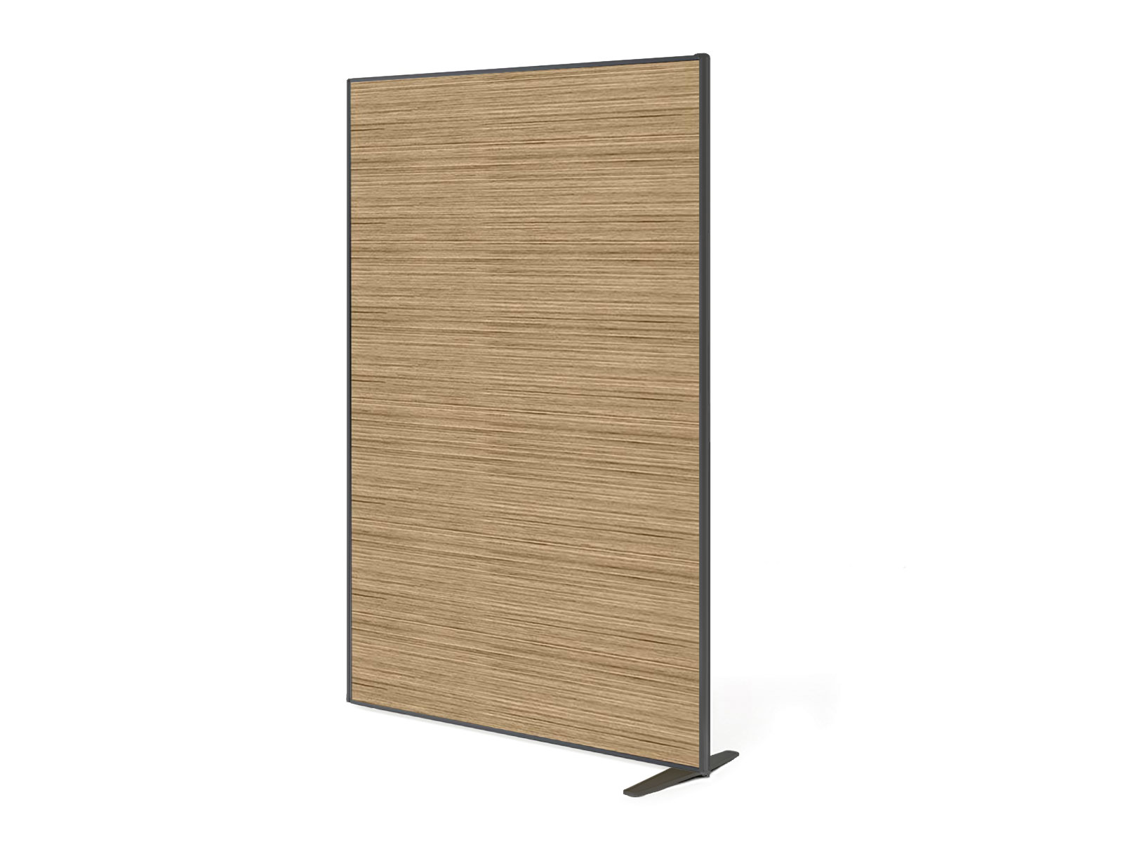 Les cloisons KP+ sont en bois mélaminé, avec traitement anti-bactérien pour certaines afin de répondre au besoin actuel de lutte contre les microbes et virus. Les cloisons sont disponibles sur pieds fixes ou à roulettes, au choix, dans 12 finitions de bois et 8 coloris unis.