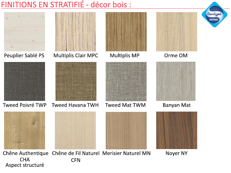 Les cloisons sont proposées en 20 finitions : voir le nuancier.