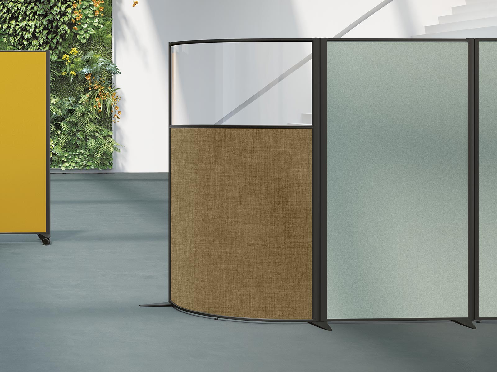 La cloison semi-vitrée courbe KP+ permet de cloisonner un espace sans le fermer complètement. Sa partie en véralite (plexiglass) permet de garder un oeil sur l'extérieur tandis que la partie pleine donne un peu d'intimité à l'espace. Ces cloisons en stratifié antibactérien protègent vos employés des virus, favorisent la concentration en open-space et participent au bien-être de chacun.