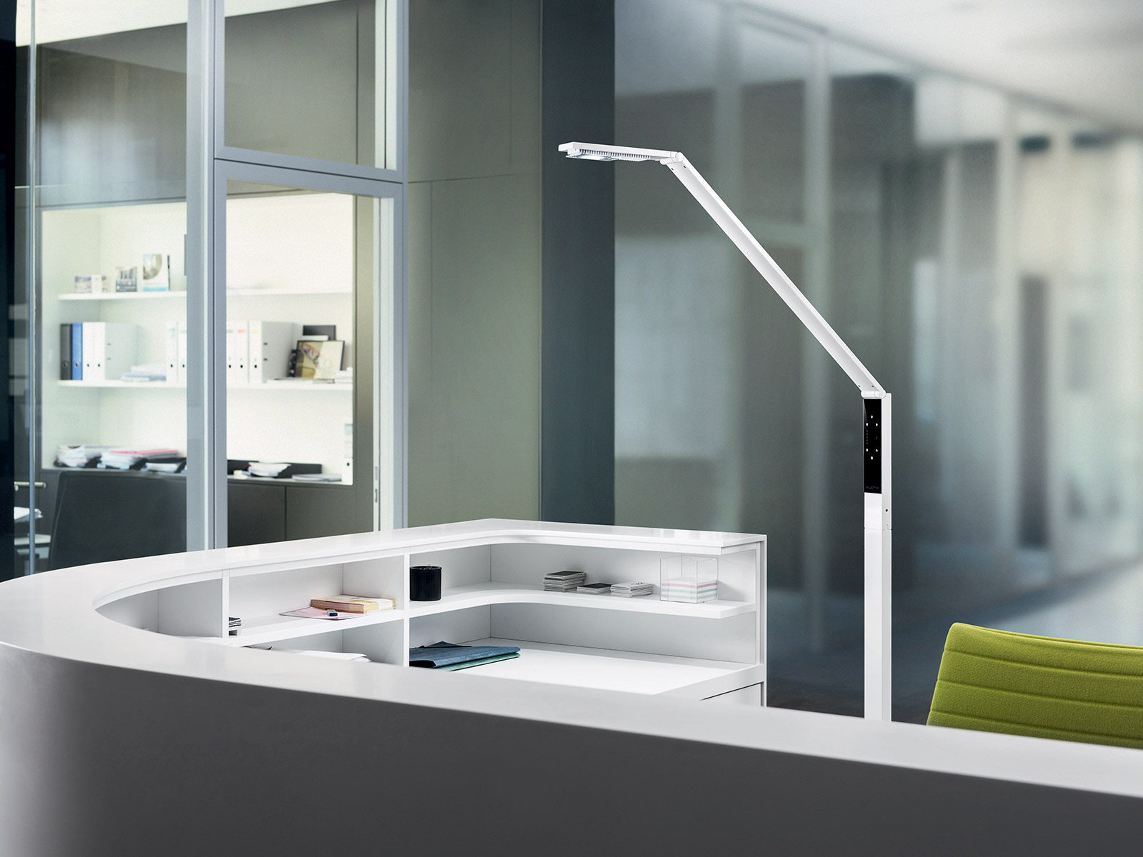 Un écran tactile intuitif en verre acrylique permet d’accéder facilement et progressivement aux températures de couleur (de 2700K à 6500K) et niveaux d'éclairement (jusqu'à 1000 lux à 110 cm du plan de travail).
