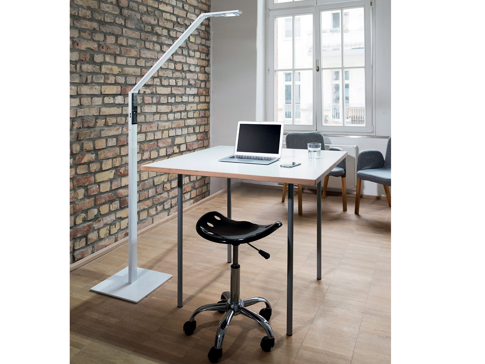 efficace, bénéfique sur la santé et adaptée à son utilisateur, Luctra a développé sa version lampadaire Floor. Ce dernier ayant tous les avantages de la lampe de bureau Table Pro® mais permettant de dégager le plan de travail ou de remplir d'autres fonctions : éclairer le coin lecture d'un bureau de direction, un salon, une salle de réunion ou d'attente.