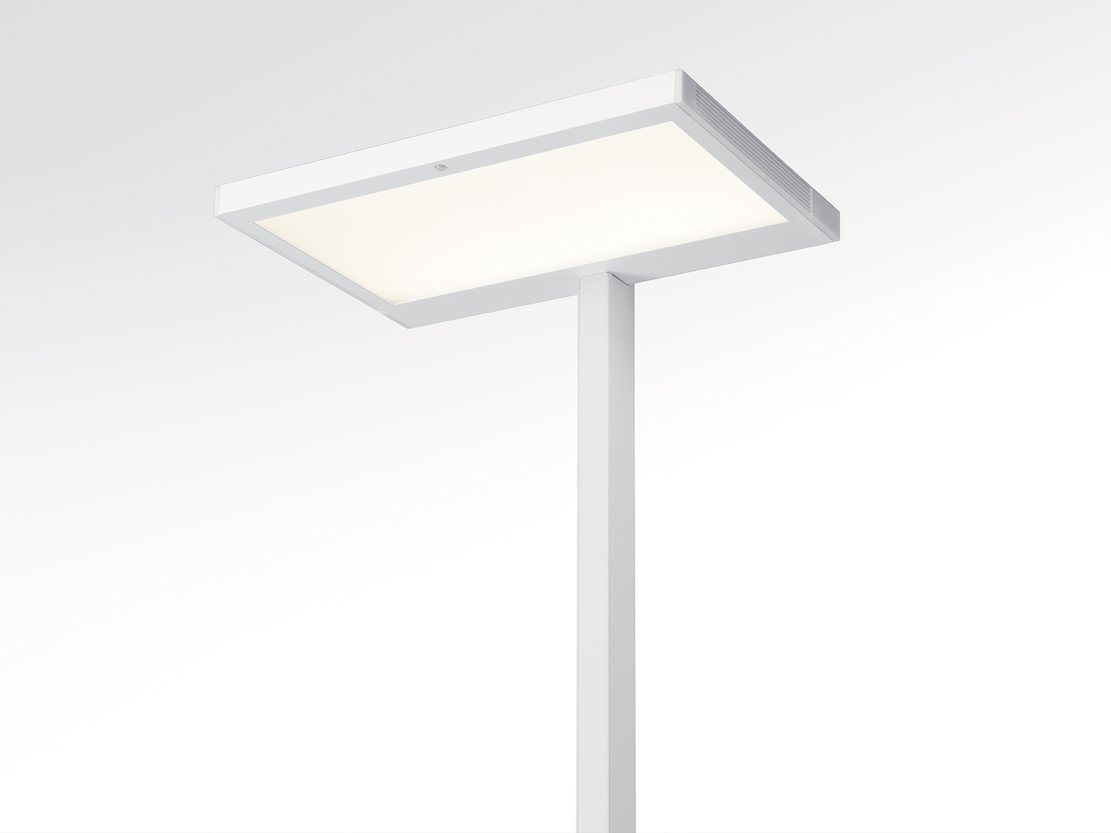 Ce lampadaire haute performance de qualité allemande VITAWORK® 12 est conçu pour produire un éclairage direct (vers le plan de travail) et indirect (vers le plafond) de manière asymétrique, et couvrir une plus grande surface de travail de manière plus homogène, tout en consommant peu d'énergie grâce à sa technologie LED. Cette version a une puissance de 12000 lumens et couvre environ 15m², ou 2 postes face à face.