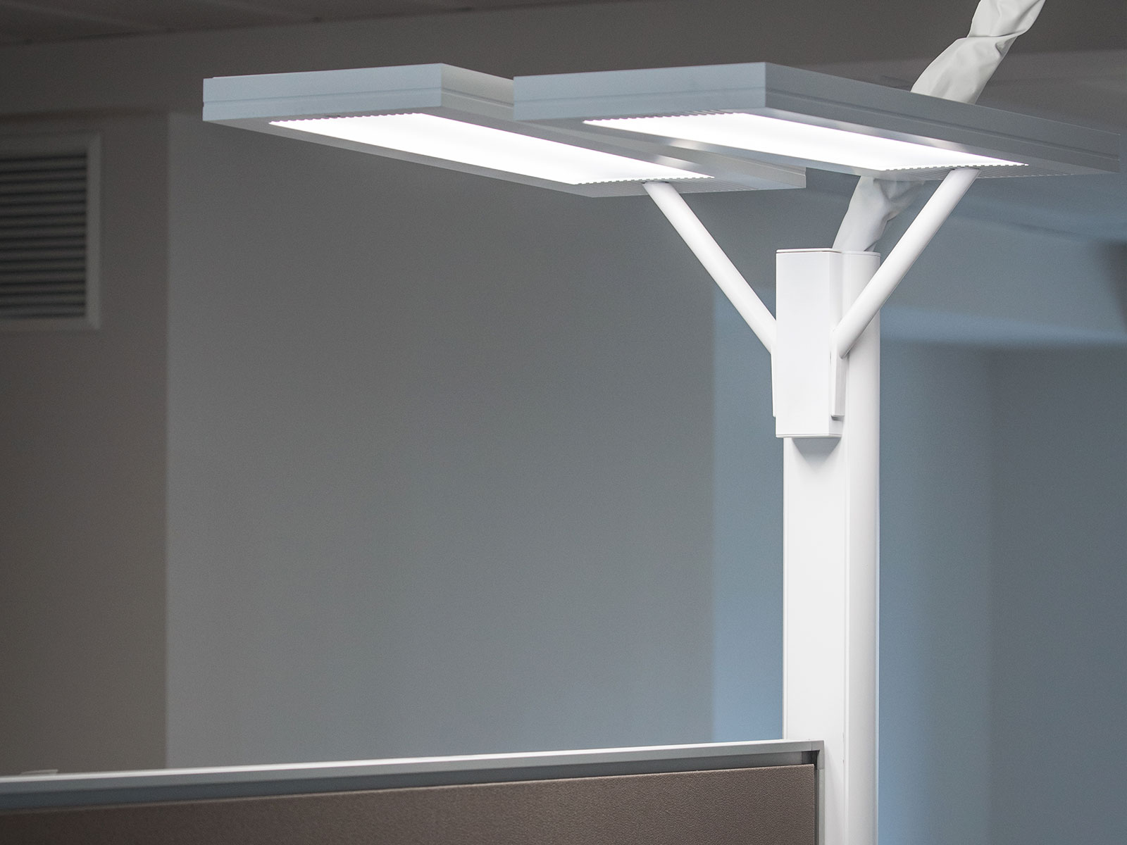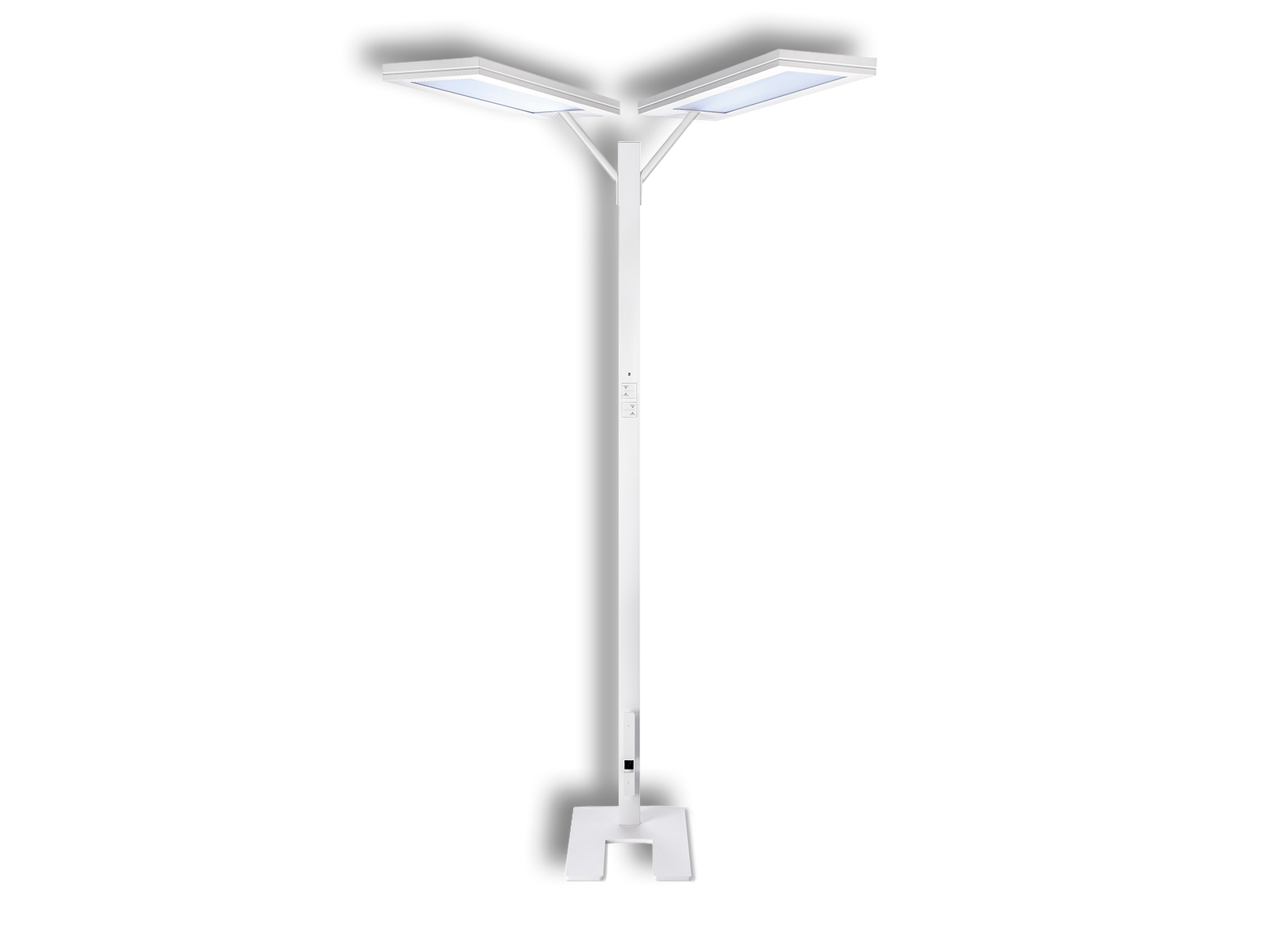Ludic Touch est un lampadaire professionnel à LED très haute qualité. Grâce à ses 2 têtes orientables, il permet d'éclairer 2 à 4 postes de travail. Son éclairage direct et indirect lui permet de se substituer à l’éclairage zénithal des bureaux traditionnels. Il est idéal pour les bureaux-bench, les open-space ou les grands bureaux.