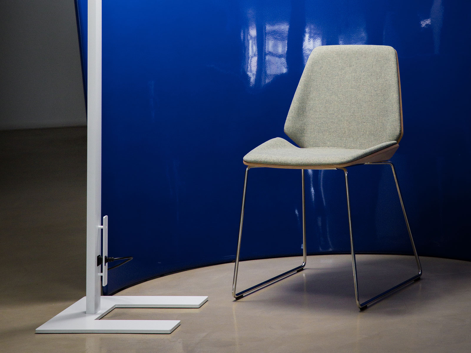 Ludic mesure 190 cm de hauteur. Son piètement en forme de U permet de s'insérer entre le pied d'un bureau ou bench. Il a un encombrement de L30 x P45 cm.