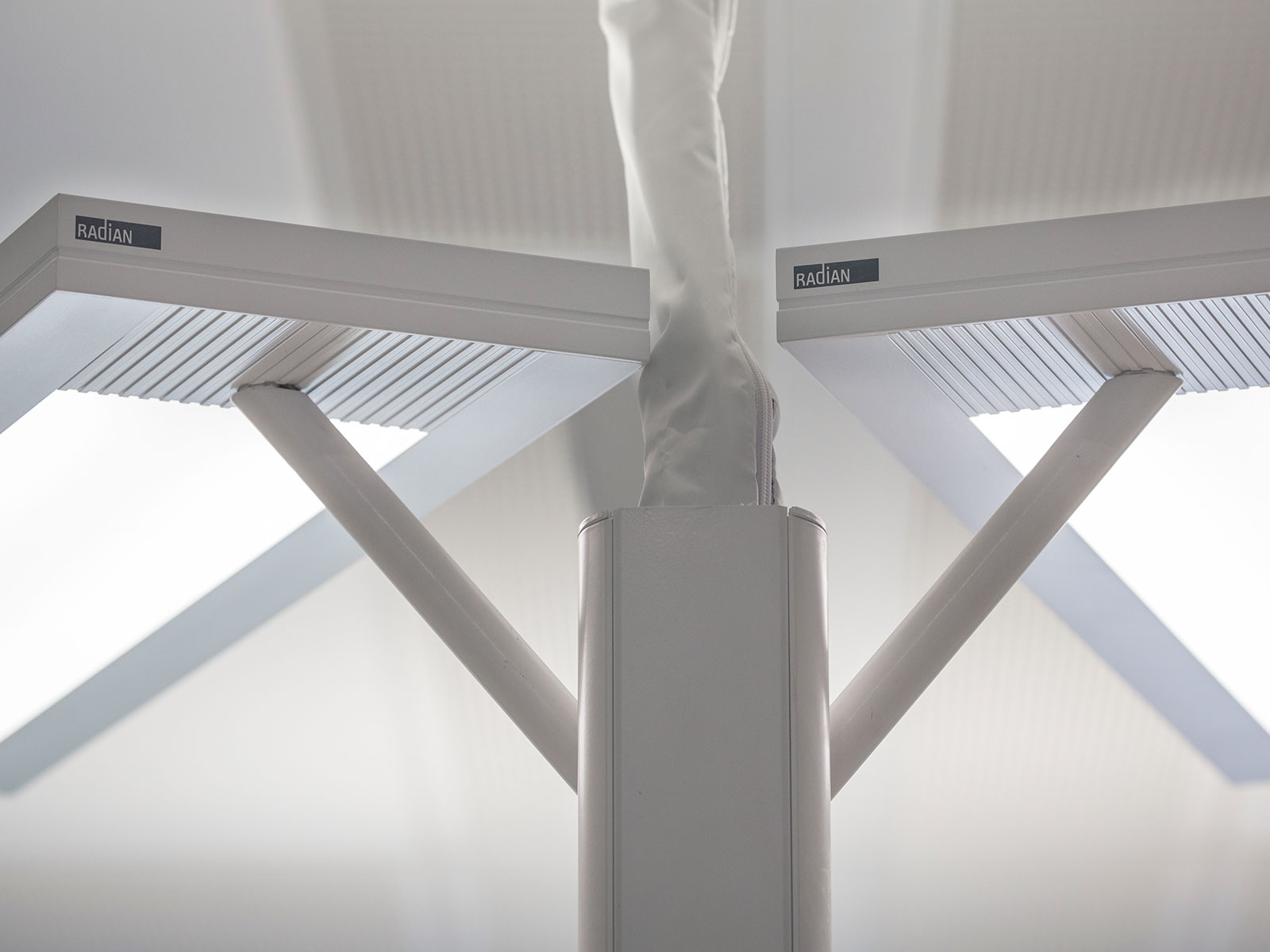 Le fait que le mât soit déporté apporte un supplément d'éclairage de 40 lux sur le plan de travail, par rapport à la version porté latéral.
