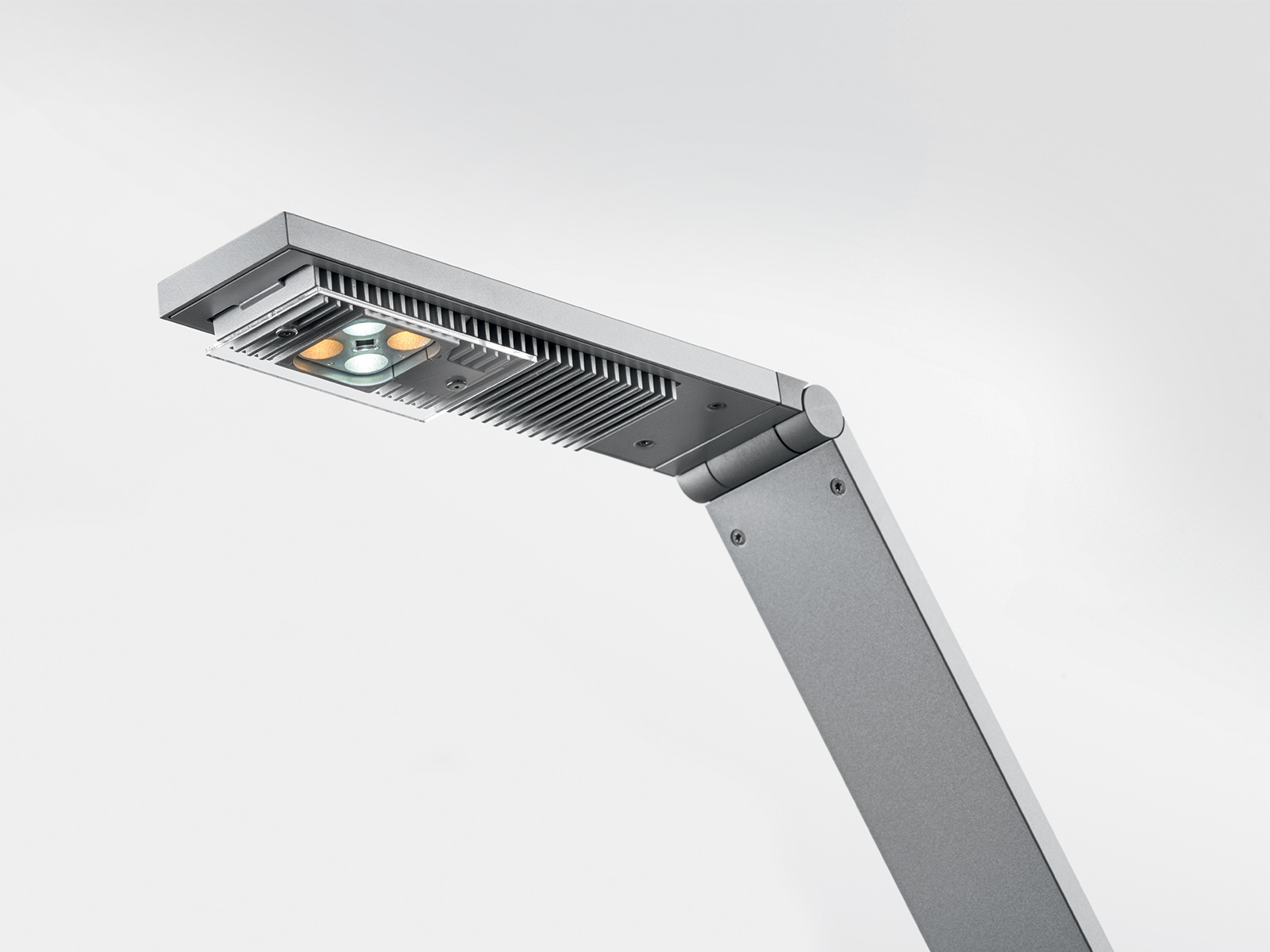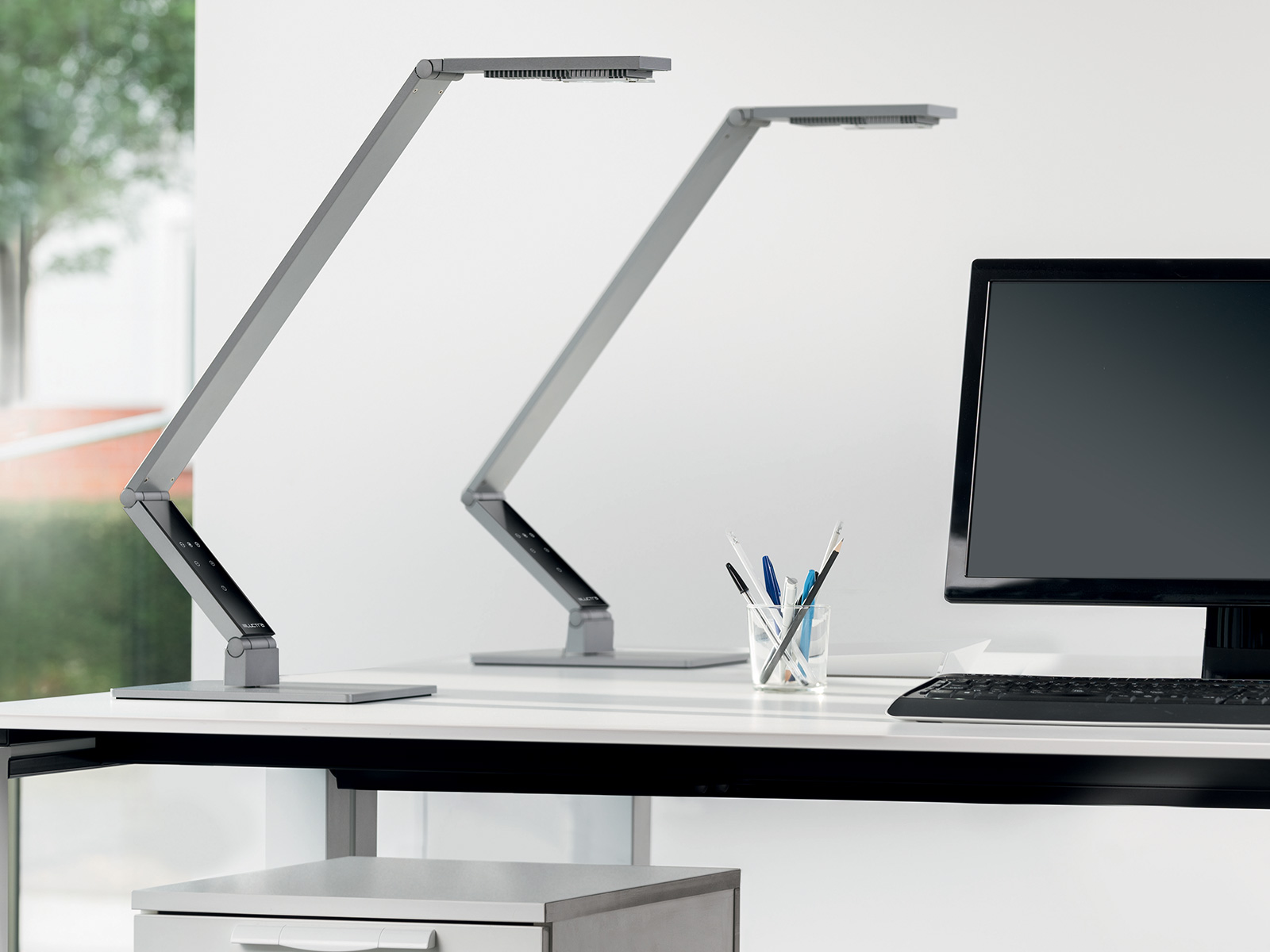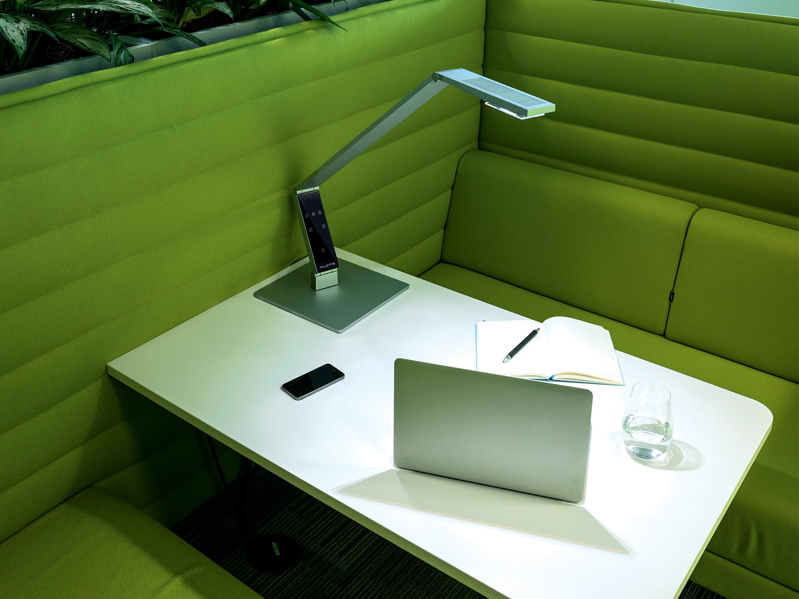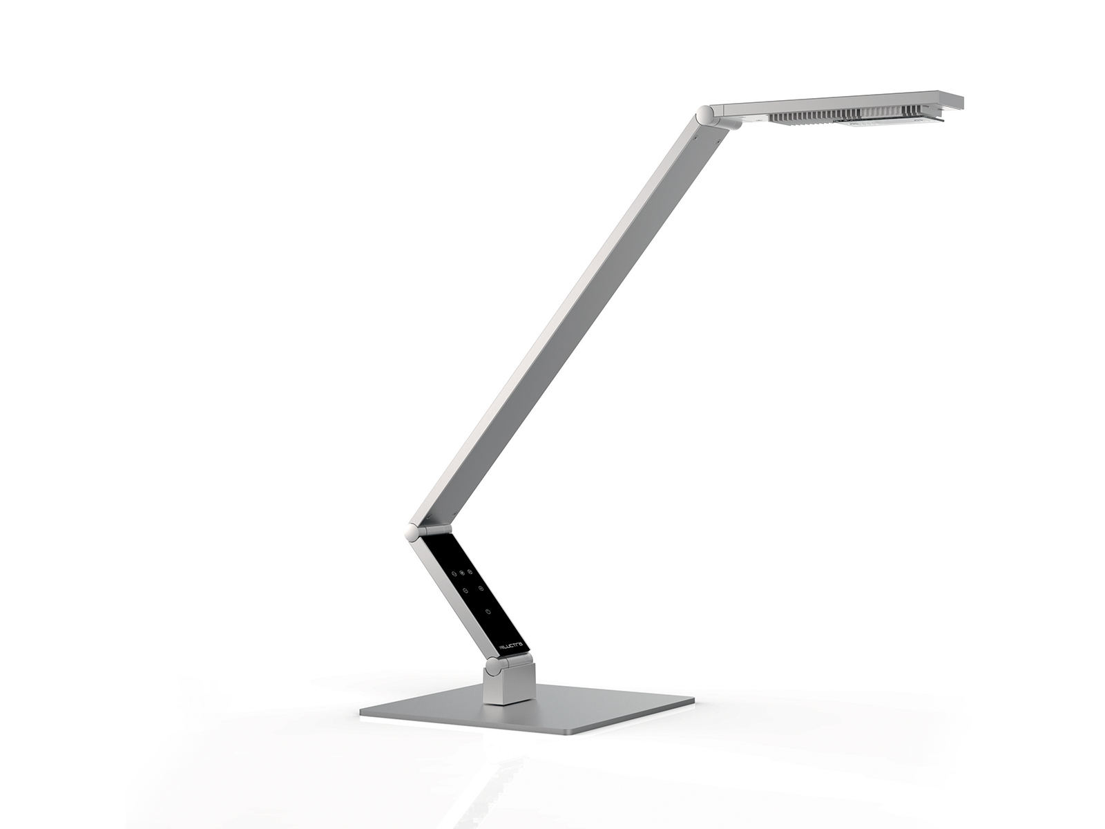 Un écran tactile intuitif en verre acrylique permet d’accéder facilement aux 5 niveaux d’éclairement (jusqu'à 1000 lux à 60 cm du plan de travail) et 3 couleurs de lumière proposées : 2700, 3600 et 6500 Kelvin. 2 LEDs en blanc froid et 2 LEDs en blanc chaud couvrent toute la gamme de la lumière du jour : 6500 Kelvin correspond à la lumière matinale en blanc froid, 3600 Kelvin à une lumière plus chaude avec moins de bleu et 2700 Kelvin simule le coucher de soleil pour un effet plutôt relaxant et chaleureux.