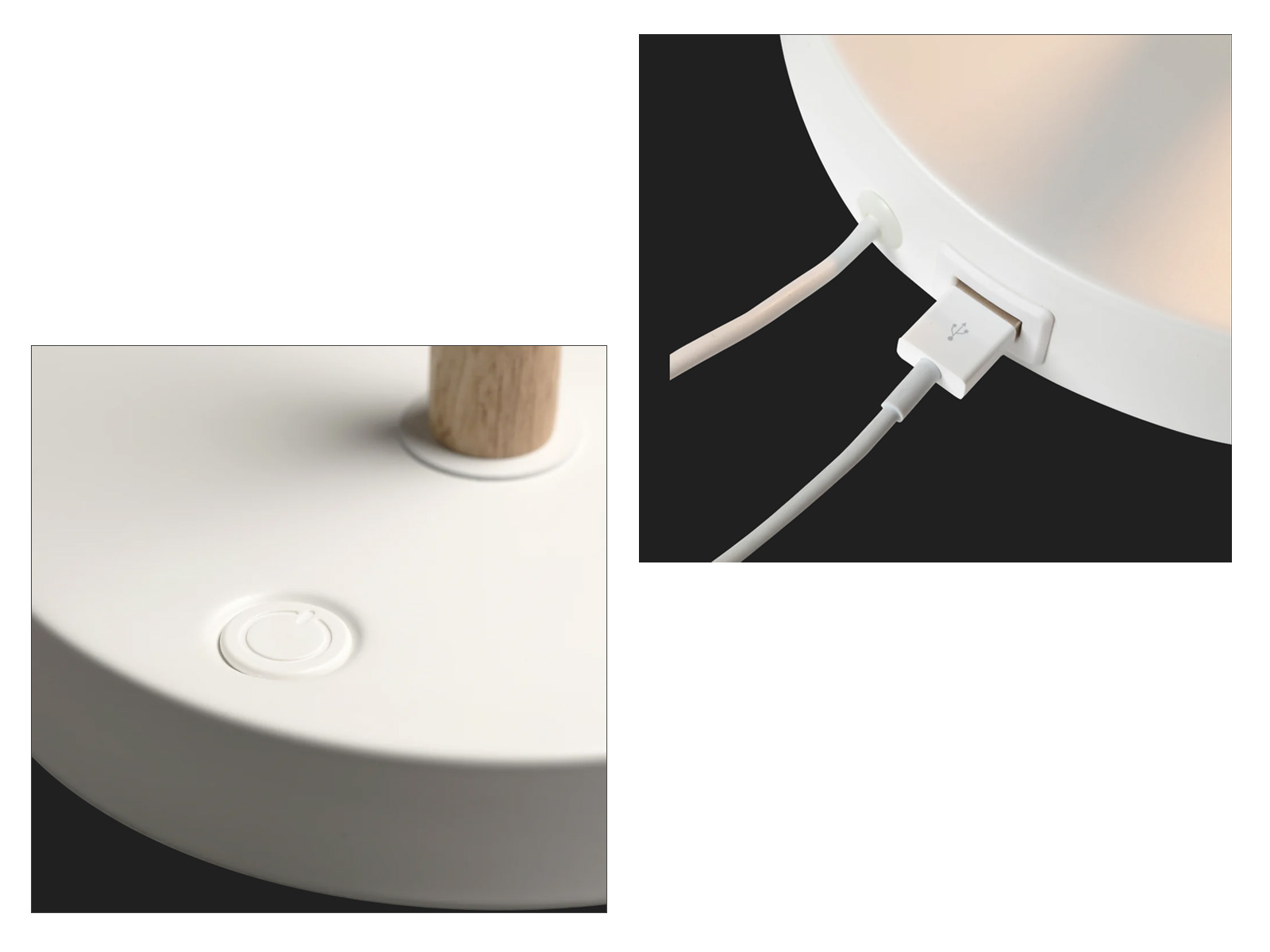 - Port de charge USB : un porte USB-A 5V est intégré dans le socle de la lampe et vous permettra de recharger votre téléphone par exemple.
