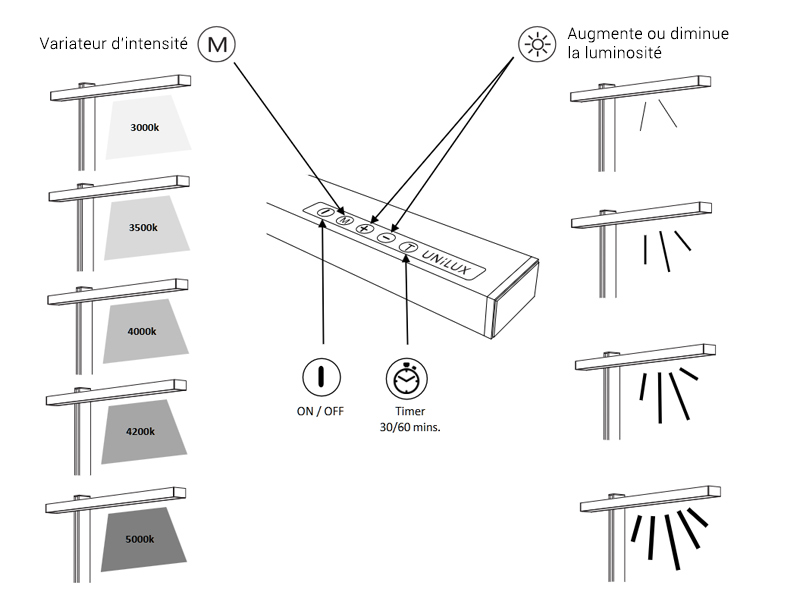 boutons tactiles intégrés sur la tête de la lampe offrent une expérience fluide et intuitive. Ajustez facilement l’intensité lumineuse et la température de couleur selon vos besoins : une lumière froide pour booster votre concentration, ou une lumière chaude pour une ambiance plus apaisante.