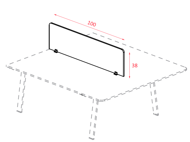 L'écran mesure 18 mm d'épaisseur et 38 cm de hauteur. Il est disponible pour les bench allant de 120 à 280 cm de large. Le panneau se décline en 12 coloris laqués mats et modernes (voir le nuancier). Il est sans profils et se fixe sur le plan de travail. Les fixations sont disponibles en noir et en blanc.