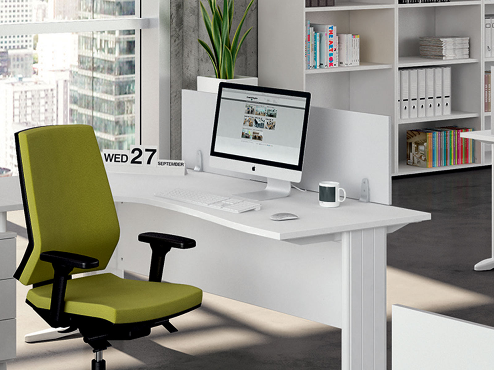 Etner propose d'ajouter sur ses bureaux simples une cloisonnette en bois mélaminé pour créer un espace privatif. Les pinces de fixation se mettant sur le plateau sont fournies.