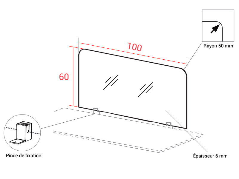 Il n'y pas de dimensions recommandées pour la cloison, il faut simplement que celle-ci soit égale ou inférieure à la largeur de votre plan de travail.