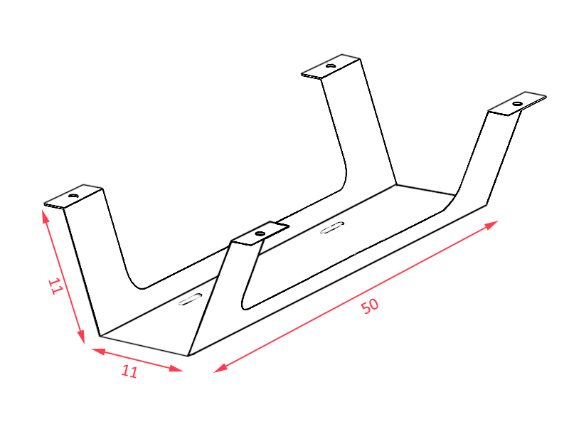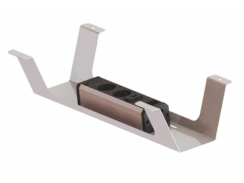 Elle mesure 50 cm de longueur, 11 cm de hauteur et 11 cm de profondeur. Elle est en métal de finition gris aluminium. Elle se fixe sous le plateau du bureau avec des vis à bois.