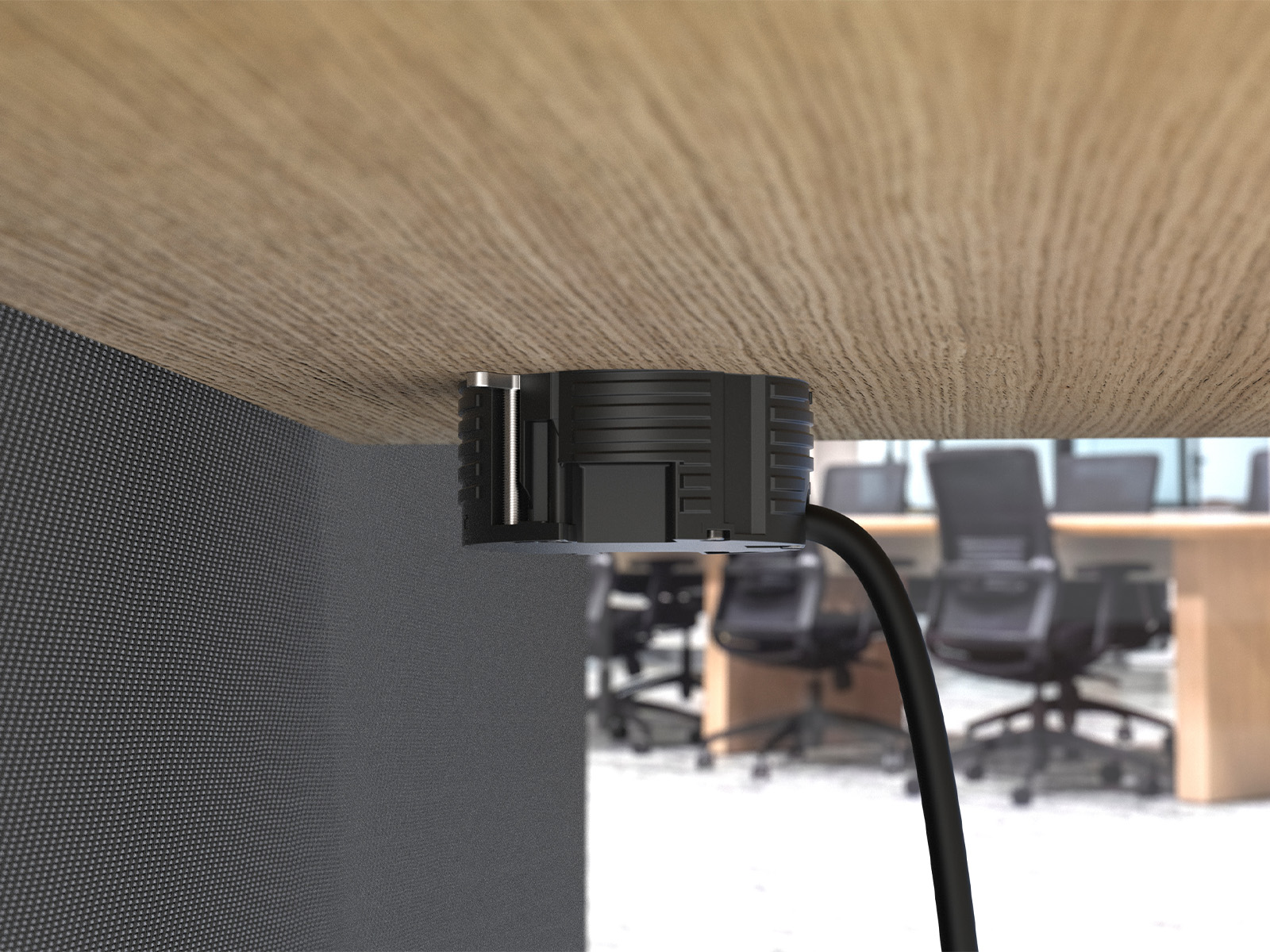 se fixe sans outil directement sous le bureau à l’aide d’un collier de serrage.