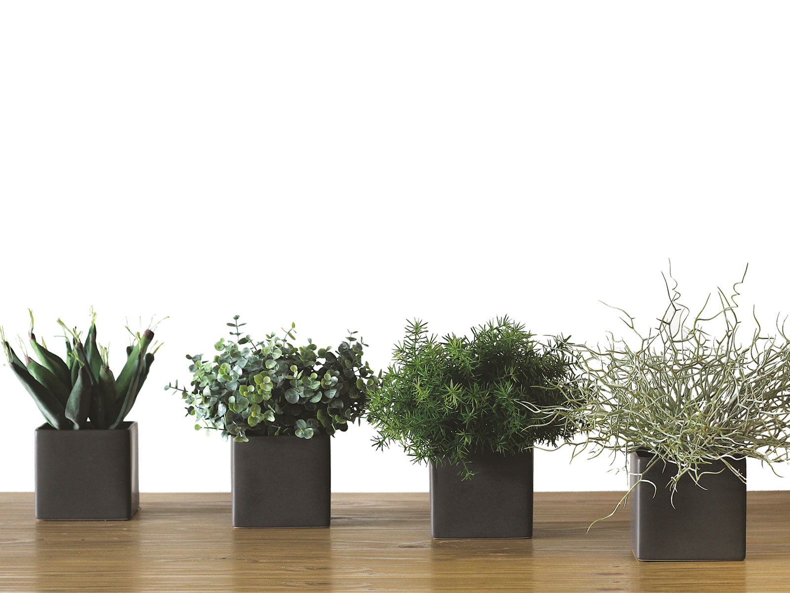 Tanaman vous propose un lot de 4 mini plantes variées, livrées avec leur pot, à poser n'importe où, sans modération : sur un bureau, une table, un bench, ou dans une salle de repos.