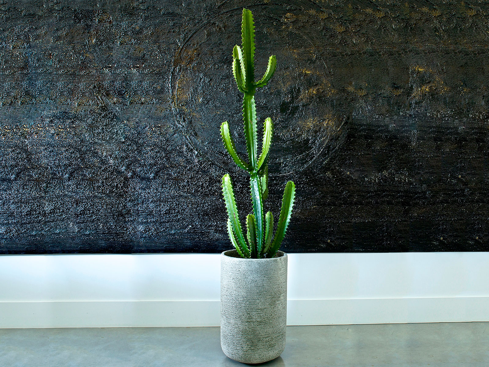 Le cactus euphorbe est une plante grasse qui vit dans les pays chauds et arides, elle a besoin de soleil, de chaleur et ne peut prospérer en intérieur. En optant pour sa version artificielle, vous profitez pleinement de son esthétique sans vous soucier de son exposition ni de son entretien. De part sa hauteur, le cactus euphorbe peut se poser au sol dans une entrée, un bureau, une salle de détente ou de réunion.