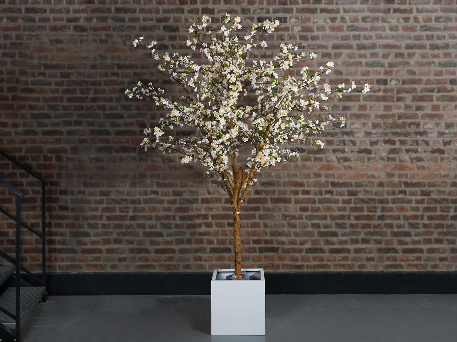 Le cerisier est composé d’un tronc en véritable bois, d'un feuillage en tergal et de fleurs en tissus qui se rapprochent au maximum du naturel. Il est livré dans son pot en fiberstone mat, blanc ou noir, garni d’écorces de pin naturelles pour un rendu réaliste aux finitions impeccables.