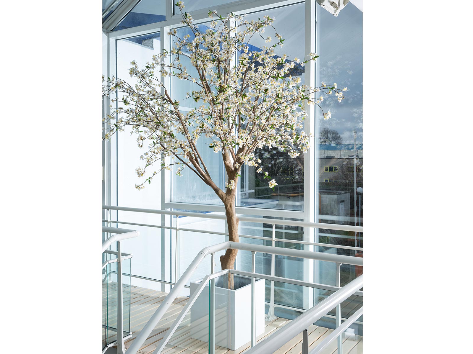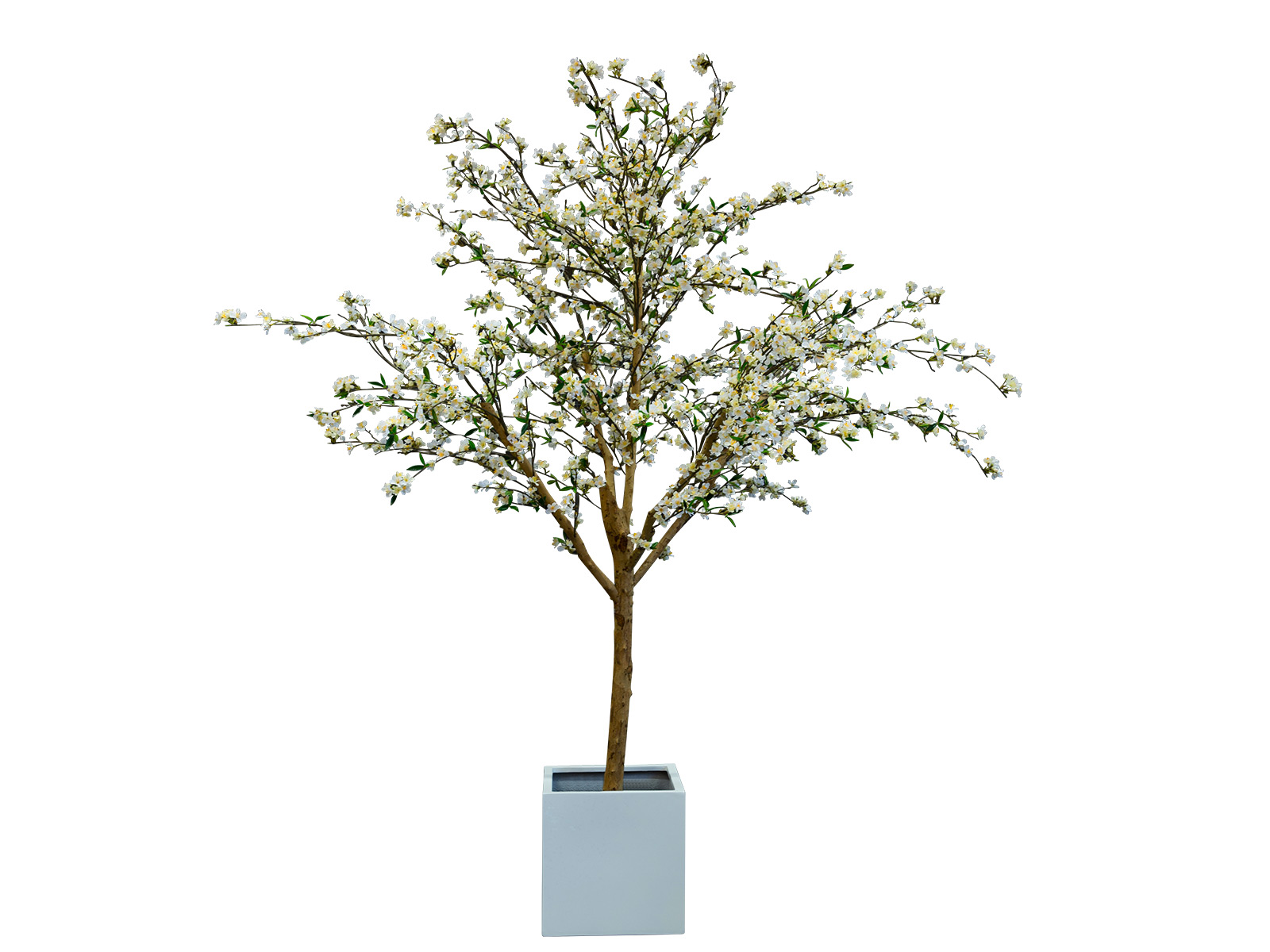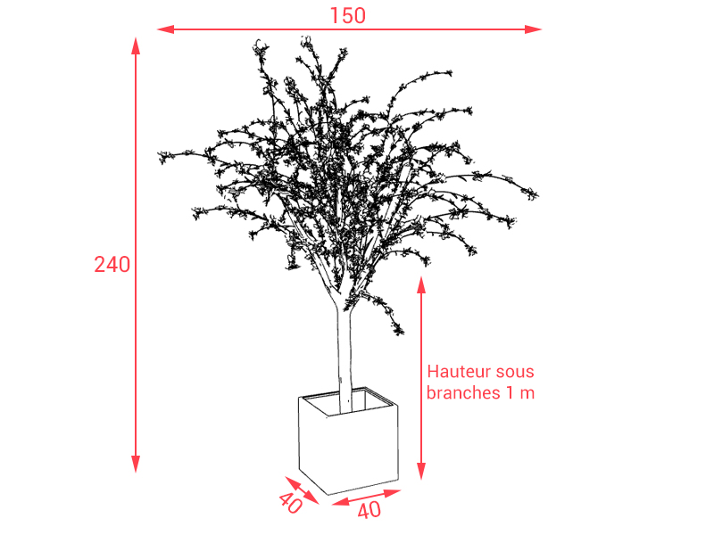 Le cerisier du Japon est un arbre réputé à travers le monde. Il est lumineux, a de très jolies fleurs et apporte une touche apaisante et à la fois tendance à une pièce. Très décoratif et en vogue, il pourra se placer au centre d'une table pour un aménagement original de vos bureaux et dans divers lieux même les moins éclairés : espace d'accueil, de réception, espace de travail partagés, espace de co-working ou de réunion. Avec ces nombreuses fleurs blanches et ses 2,40 m de hauteur et 150 cm envergure, il ne passera pas inaperçu.