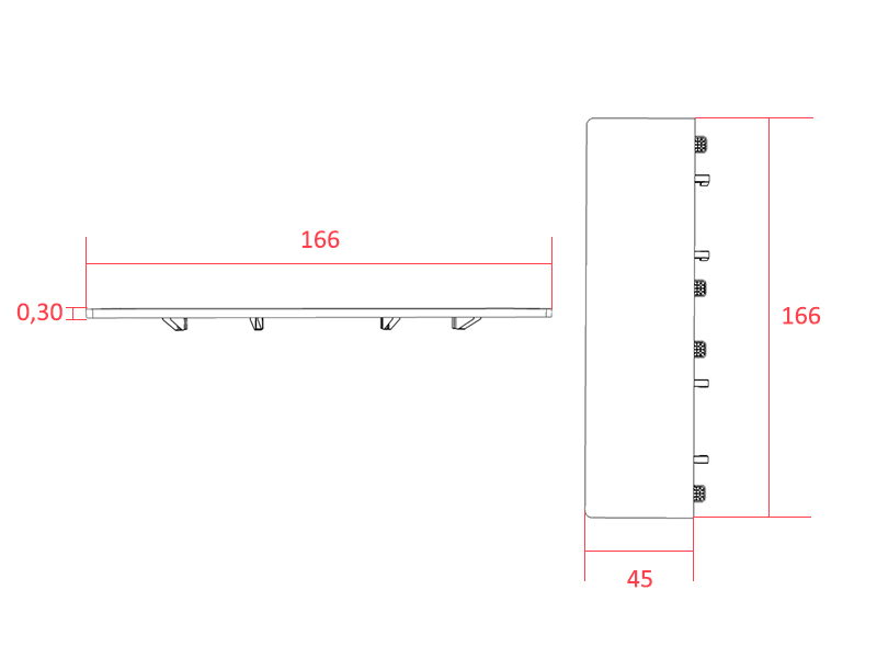 Le plateau a une forme droite avec les bords arrondis. Il mesure 166 de long et 45 de large, afin de s'aligner parfaitement avec le bench M10 2P ou 4P. Plusieurs finitions de plateaux sont disponibles : blanc polaire, érable, chêne, noyer et moka.