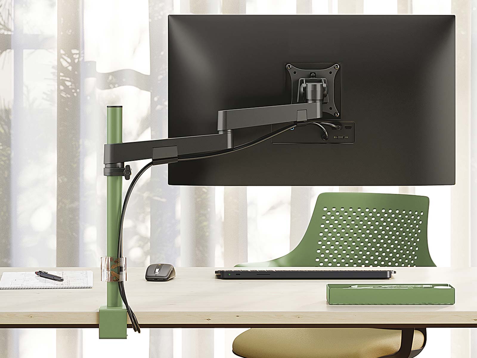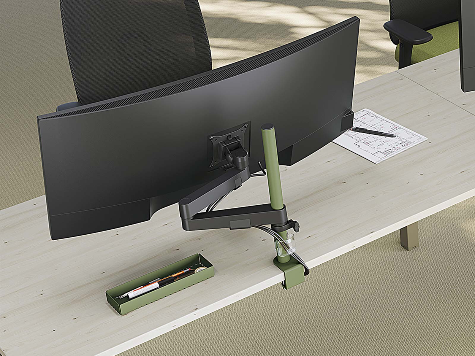 Le support écran Click propose un design simple et un coût réduit tout en offrant un large choix de coloris. On retrouvera une partie de ces coloris dans les produits des marques Clen / Columbia, permettant d'avoir un ensemble visuellement cohérent. Ce support permet l'installation d'un écran qui pourra être ajusté en hauteur, en inclinaison et pivot.