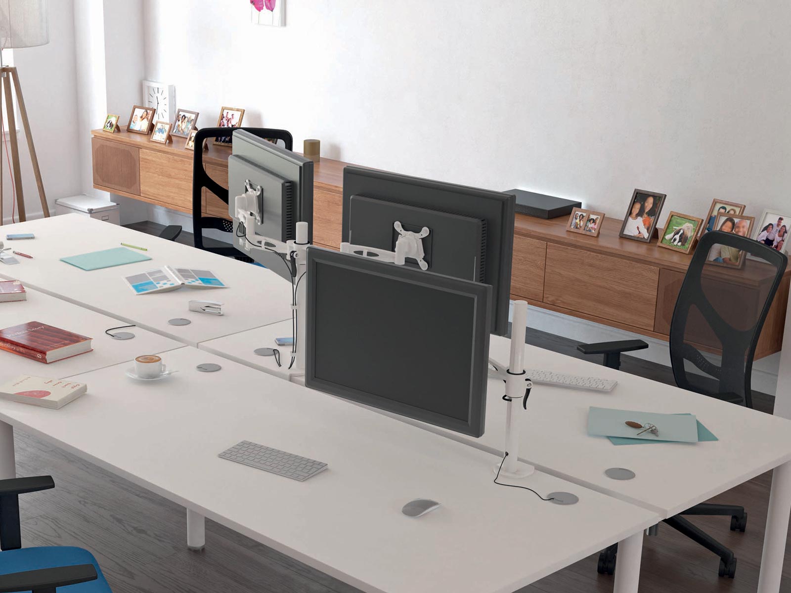 Le bras d'écran permet d'avoir un ajustement parfait de la hauteur et de l'inclinaison de votre écran. Cet accessoire de bureau est compatible avec des tailles d'écran jusqu'à 38 pouces. pour un poids maximal de 12 kg (pour le modèle 1 bras) et 10 kg par écran (pour le modèle 2 bras).