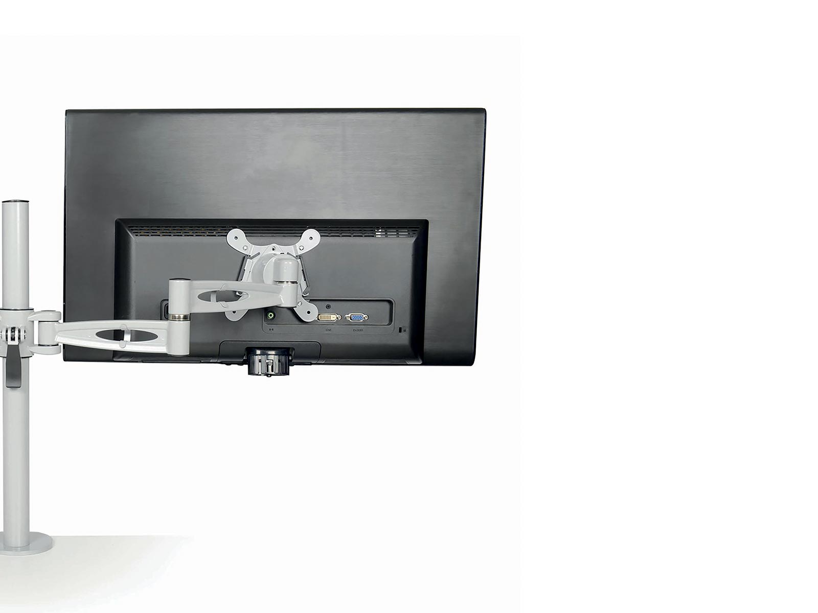 Ce bras d'écran se fixe au bureau par pince ou par vis. Il s'adapte facilement à votre poste de travail grâce à un réglage rapide de la hauteur et à trois points d'articulation.