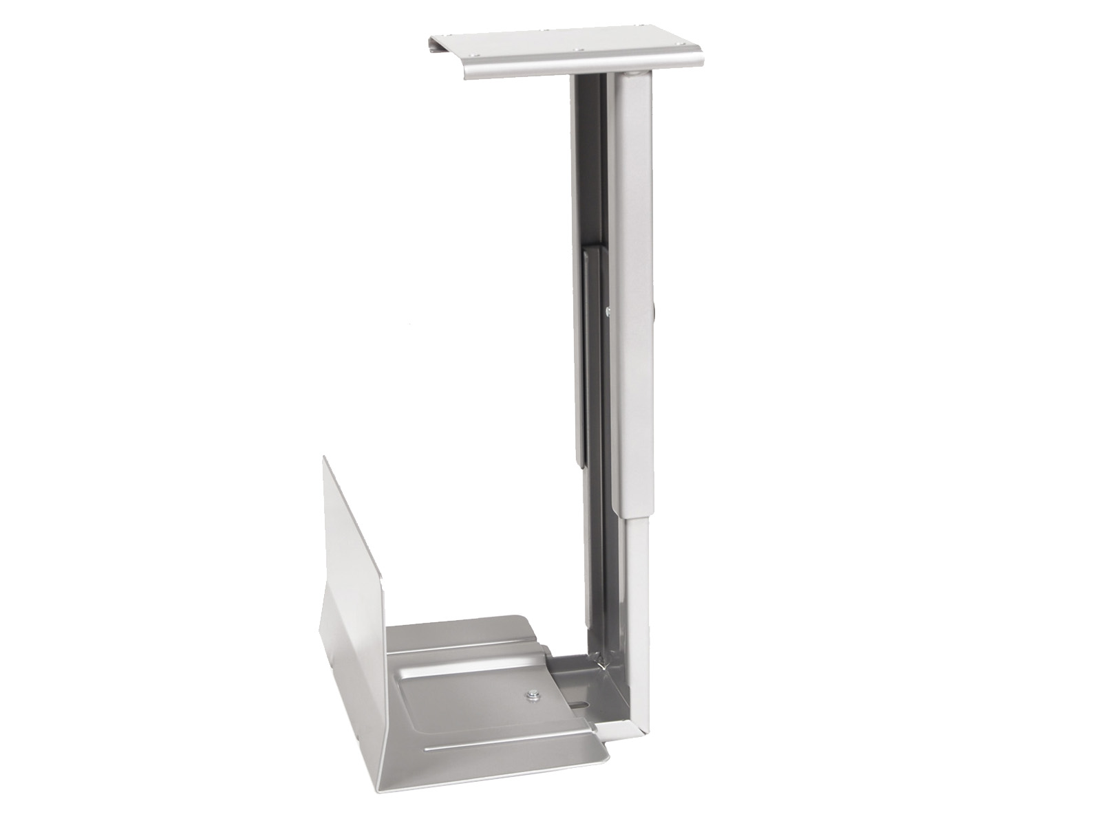 Ce support pour unité centrale est réglable en largeur et en hauteur. Il se visse directement sous le plateau à l'aide de vis à bois fournies, et dont la longueur est adaptée aux plateaux de 25 mm d'épaisseur.