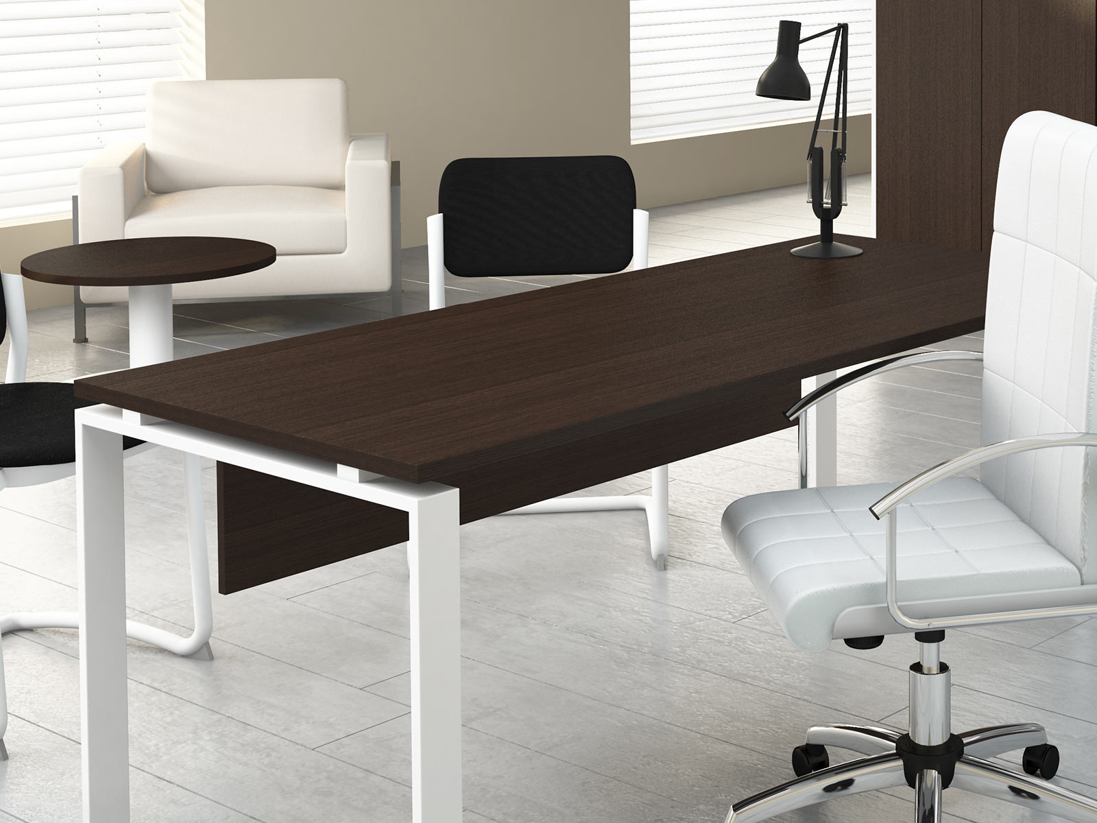 Le voile de fond est en bois mélaminé d'épaisseur de 18 mm. Il mesure 35 cm de hauteur. Il est proposé en blanc, chêne clair, chêne gris, wengé, noyer et gris. Il s'attache au bureau par des fixations métalliques assorties au piètement : blanches ou grises.