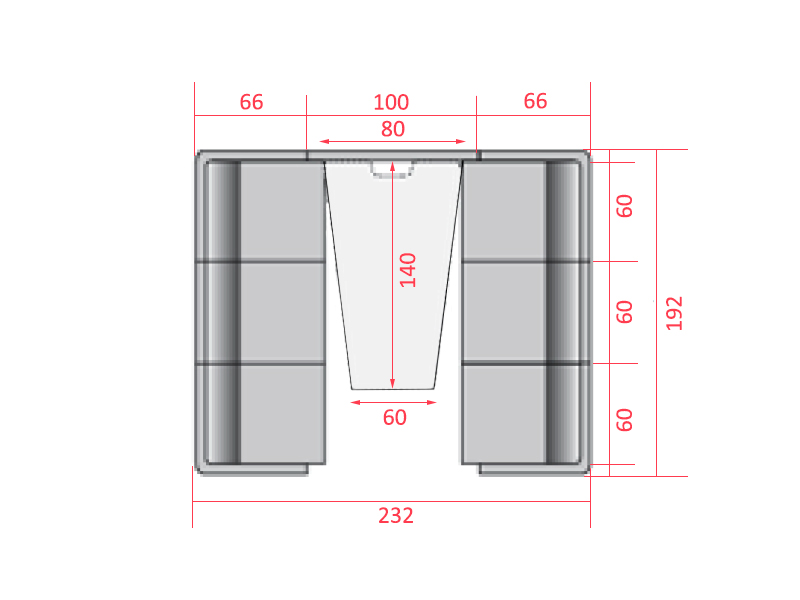 La table trapézoïdale est disponible en plusieurs dimensions sur mesure (toutes ne peuvent pas convenir pour la solution présentée ici) :