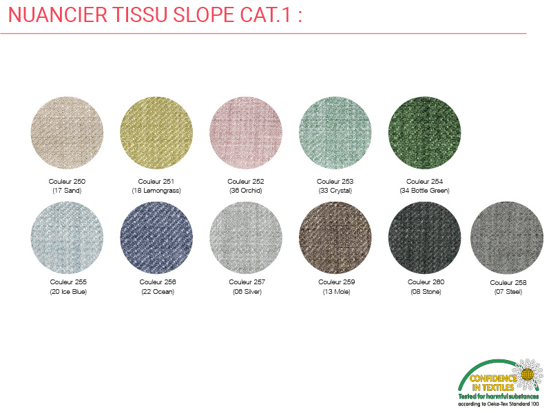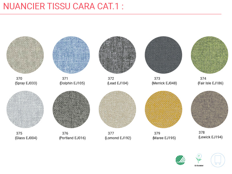 Afin de garantir la plus grande transparence, Gotessons conçoit son mobilier selon les normes SS-EN 1023 relatives aux exigences de sécurité, de stabilité, de durabilité pour un usage en milieu professionnel. L’absorption du son a été évaluée selon les normes européennes ISO 354 et ISO 20189. Les matériaux utilisés sont la mélamine (cadre des cloisons), la mousse de polyuréthane (cloisons et assises) et du tissu de renom (cloisons et assises) sélectionnés chez Camira, Kvadrat ou encore Gabriel… La Hut Half vous est suggérée ici en beige Cara pour la maisonnette et en rose Slope pour les canapés.