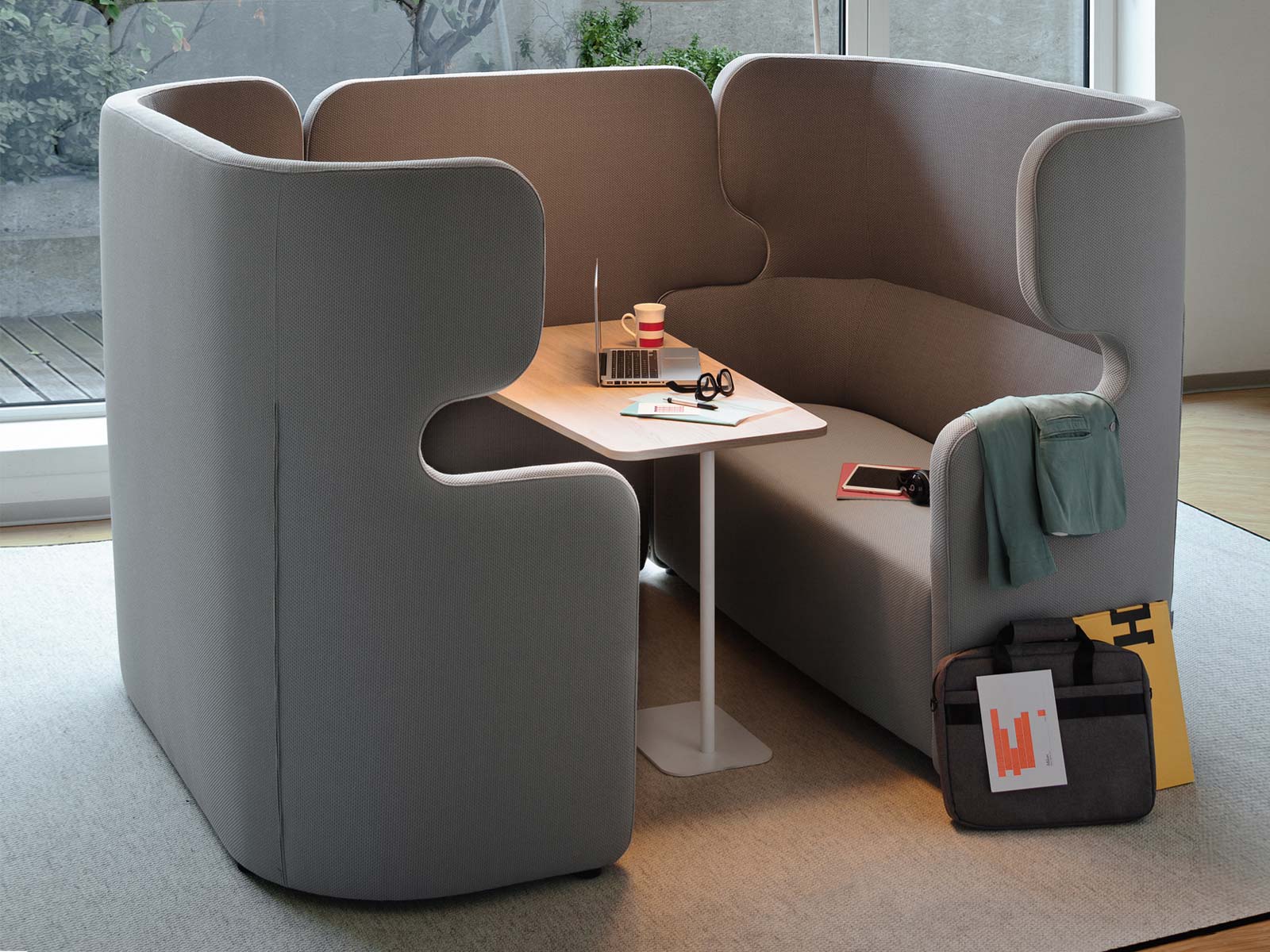 Pour des rencontres informelles ou des séances de travail en toute sérénité dans des espaces partagés, découvrez la cellule de réunion acoustique informelle Together. Sa disposition semi-ouverte améliore l'acoustique tout en préservant l'intimité, ce qui en fait un choix idéal pour les environnements de travail partagés.