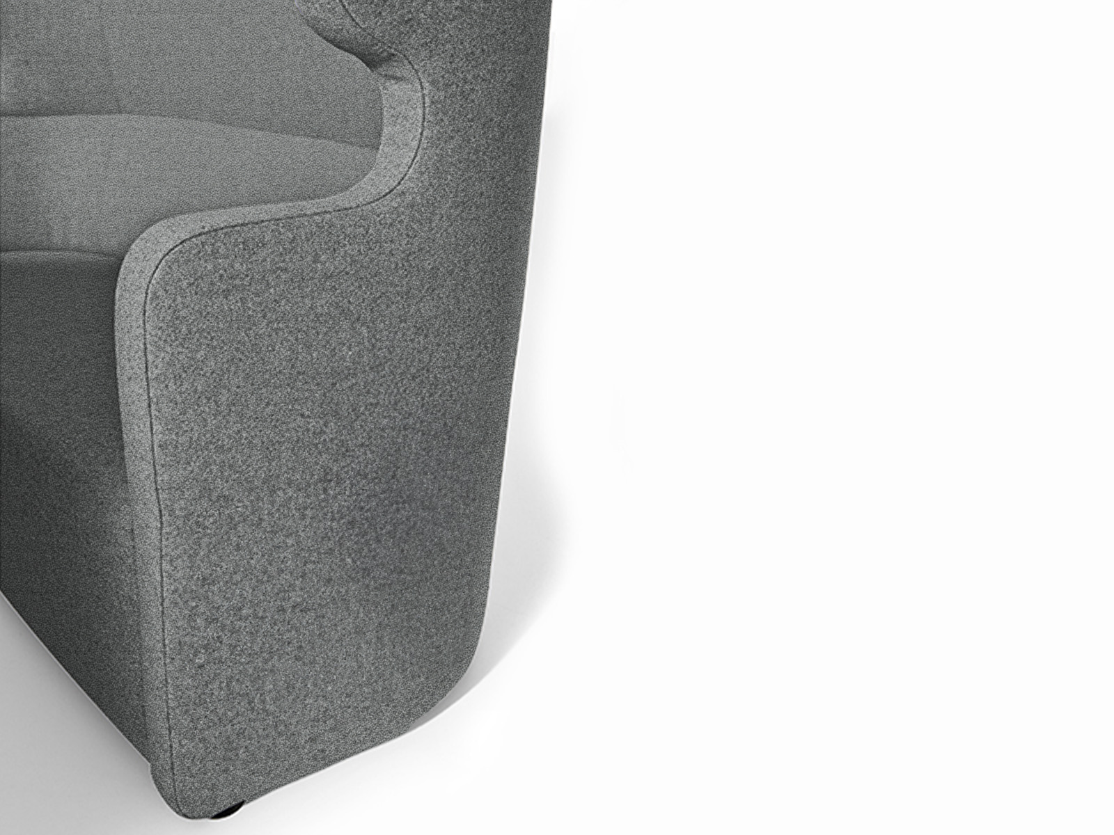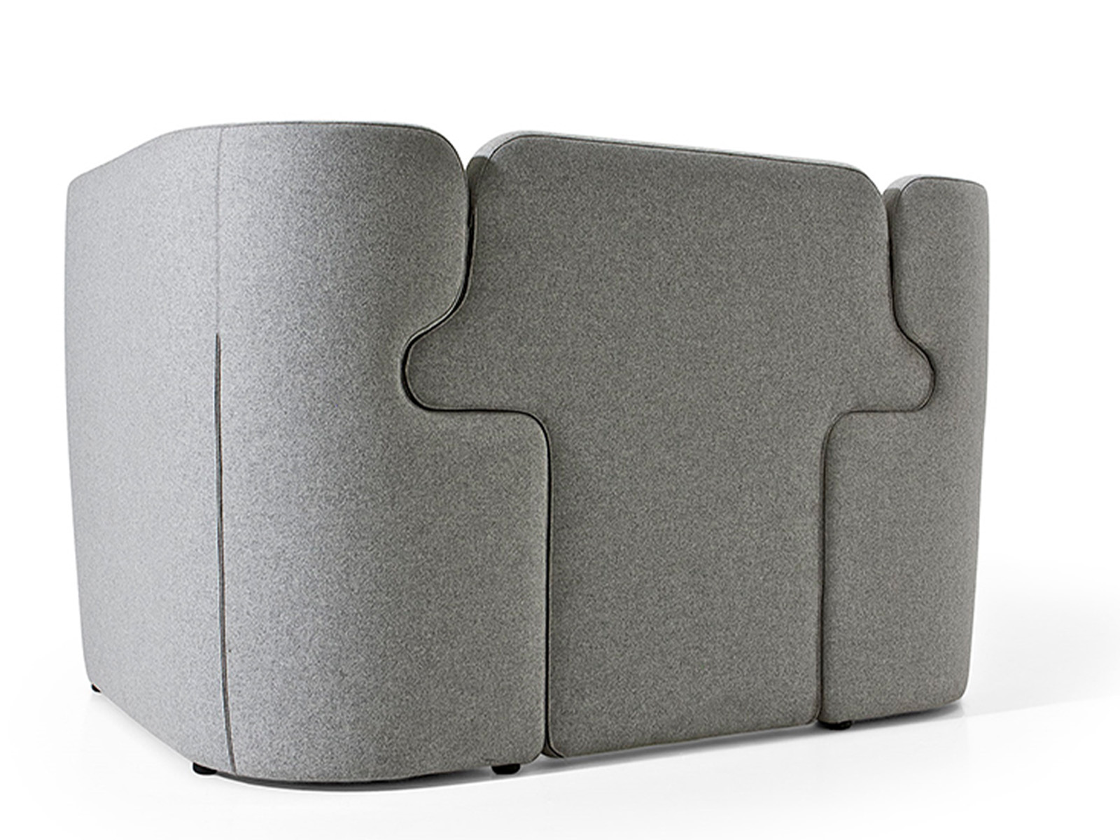 Fabriquée en bois et enveloppée de mousse de polyuréthane puis de tissu, l'alcôve Together offre un confort optimal avec ses bandes élastiques renforçant l'assise. Disponible en uni ou en bicolore, cette version monocolore est revêtue d'un tissu ignifuge de couleur gris. D'autres nuances sont disponibles sur demande.