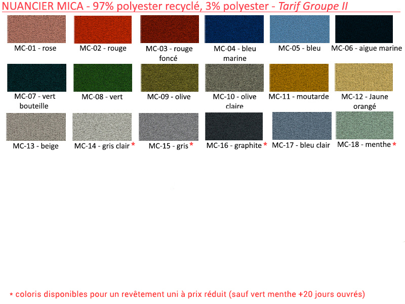 La cabine est disponible dans 3 types de tissu disposant chacun de nombreux coloris. Il est possible de tapissé la cabine entièrement avec le même coloris ou bien en bicolore dans un même type de tissu.Lire la suite