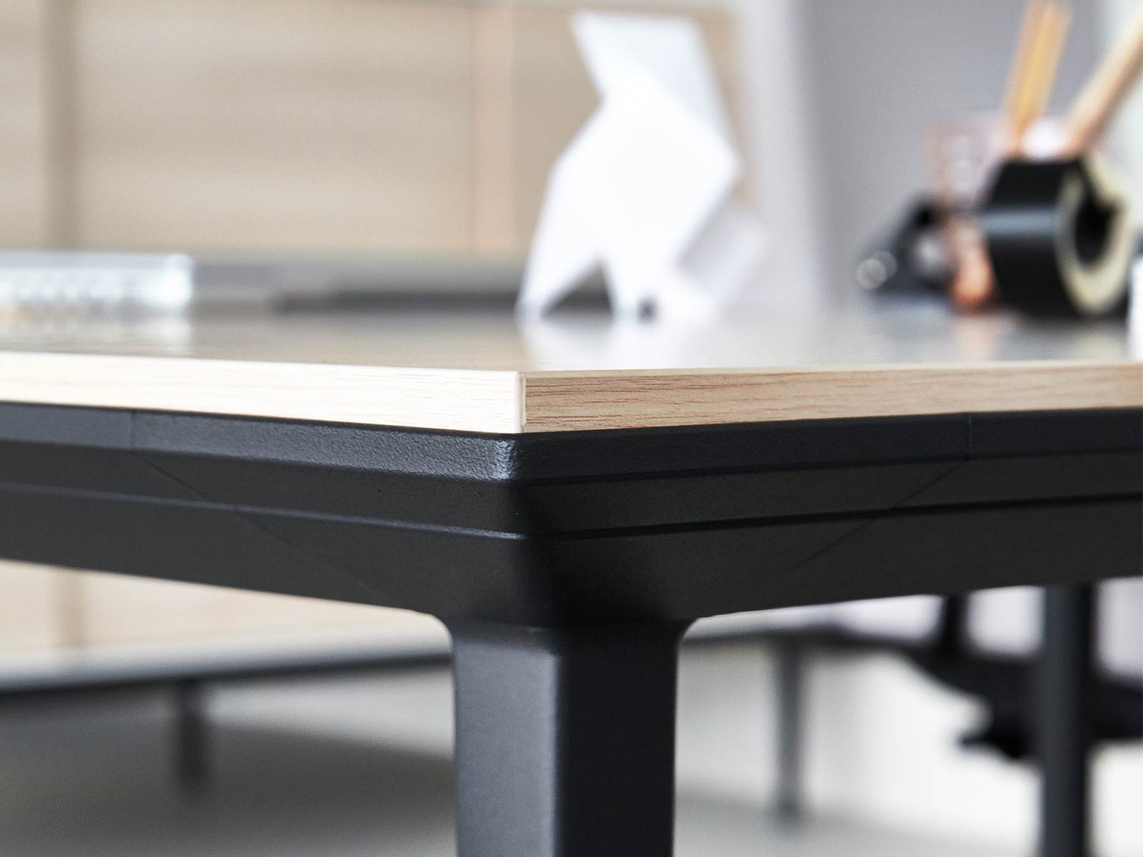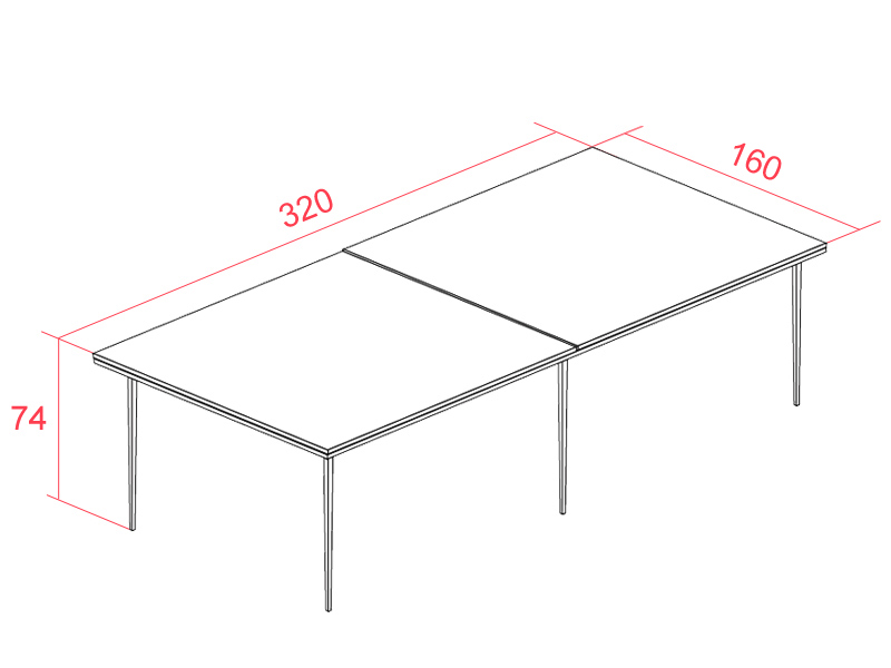 Longo est composé de 2 grands plateaux en mélaminé d'épaisseur 19 mm, encastrés dans la structure pour plus de robustesse et de finesse. Le bureau bench mesure 74 cm de hauteur, 320 cm longueur et 160 cm de profondeur.