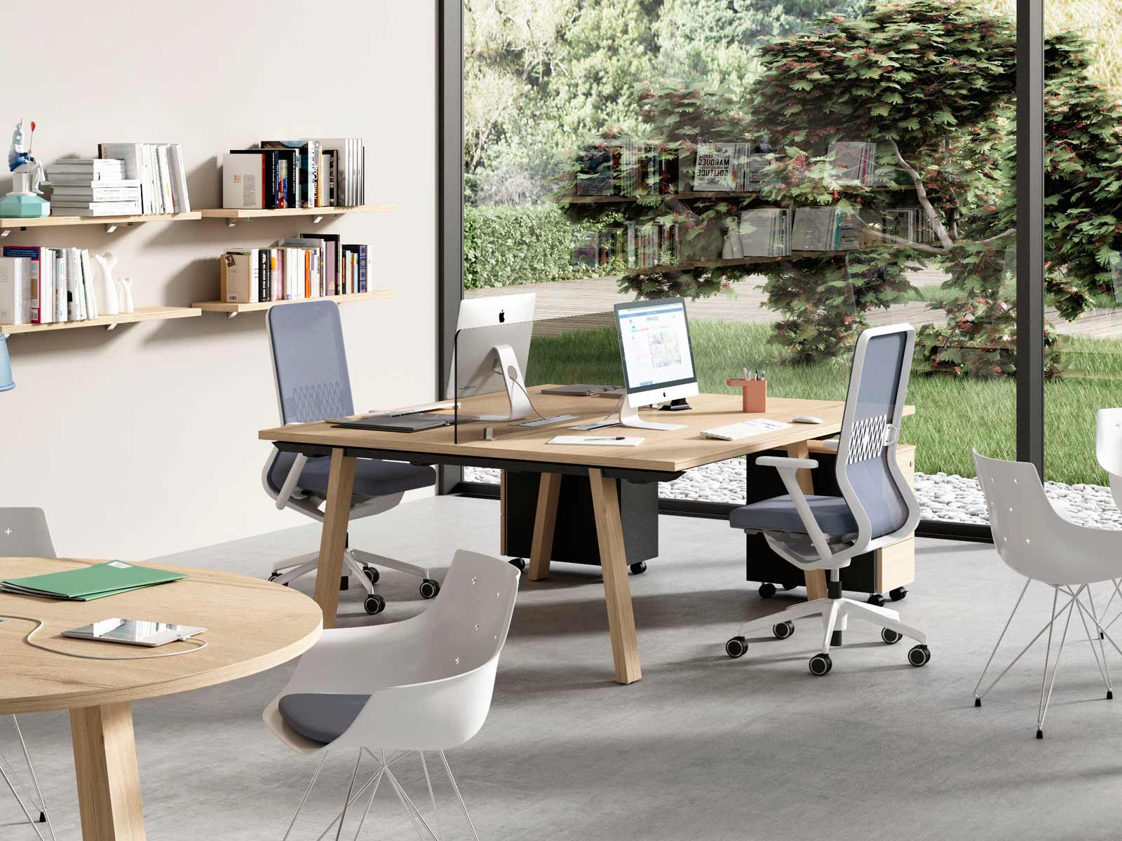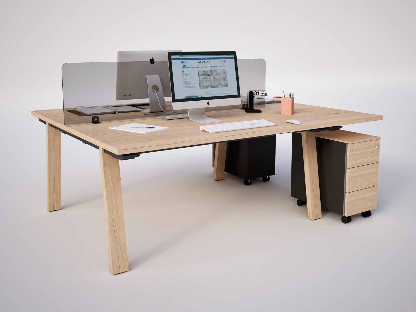 Le bureau bench Trendwood pour 2 personnes se caractérise par son plateau unique d'aspect chêne vieilli et son piètement en A de même finition. A la fois moderne, fonctionnel et vintage, grâce à son revêtement texturé très réaliste, il est idéal pour les espaces de travail partagés de type co-working, les open-space ou les bureaux qui ont besoin de maximiser l'espace.