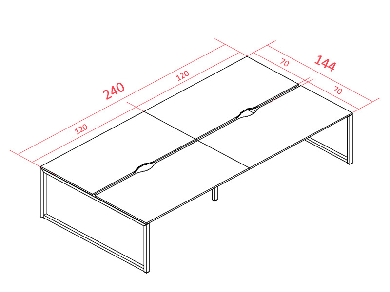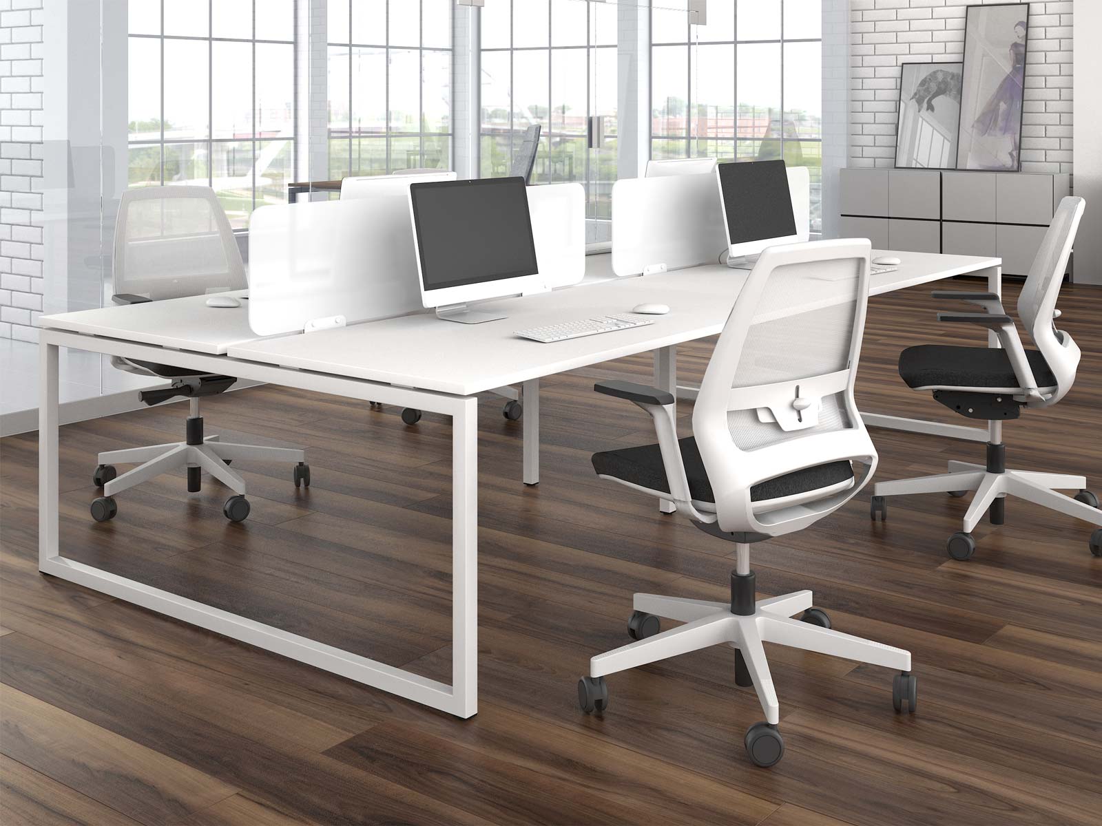 Le bureau 4 personnes Carbone O dispose d'un élégant piètement cadre en acier dont 1 en retrait au centre permettant de libérer plus d'espace afin, par exemple, d'ajouter un caisson mobile. Les plateaux sont en bois mélaminé de 25 mm d'épaisseur et disposent tous d'une encoche au centre pour faciliter le passage des câbles sous le bureau. Une goulotte horizontale proposée en accessoire permettra de récupérer les câbles et stocker les éventuelles multiprises discrètement.
