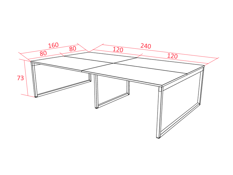 Les 4 plateaux d'épaisseur 25 mm sont en bois mélaminé et situés à une hauteur de 73 cm. Ils mesurent au choix 120, 140, 160 ou 180 cm de large pour une profondeur de 80 cm. Les finitions disponibles pour s'accorder avec votre intérieur sont : hêtre, blanc, gris, noyer canaletto béton et chêne.