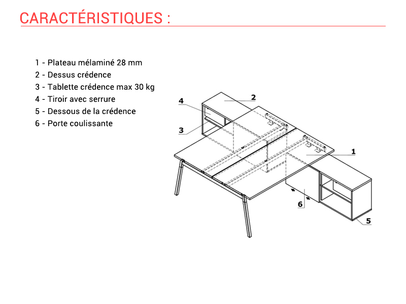 large choix de finitions et d'accessoires vous permettront d'adapter le bureau au plus proche de vos besoins.
