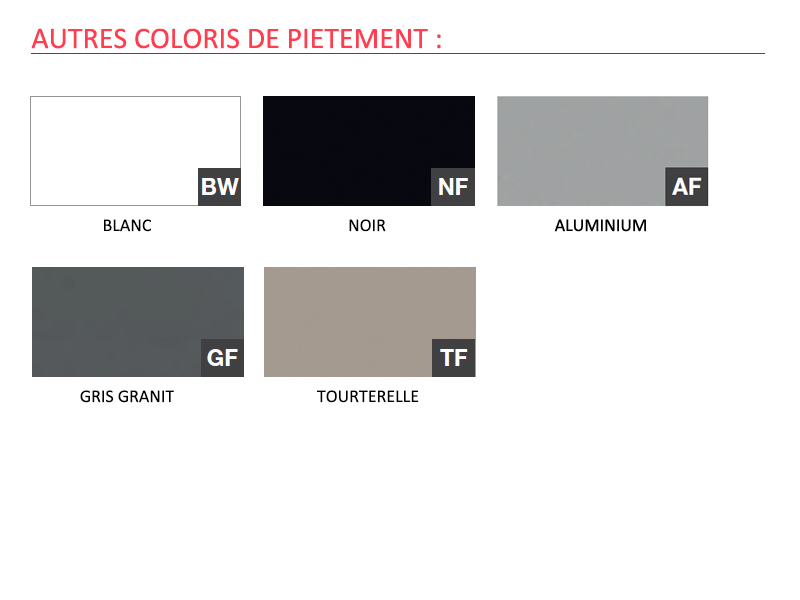 Les poutres métalliques sont noires, quelle que soit la finition du pied choisi.