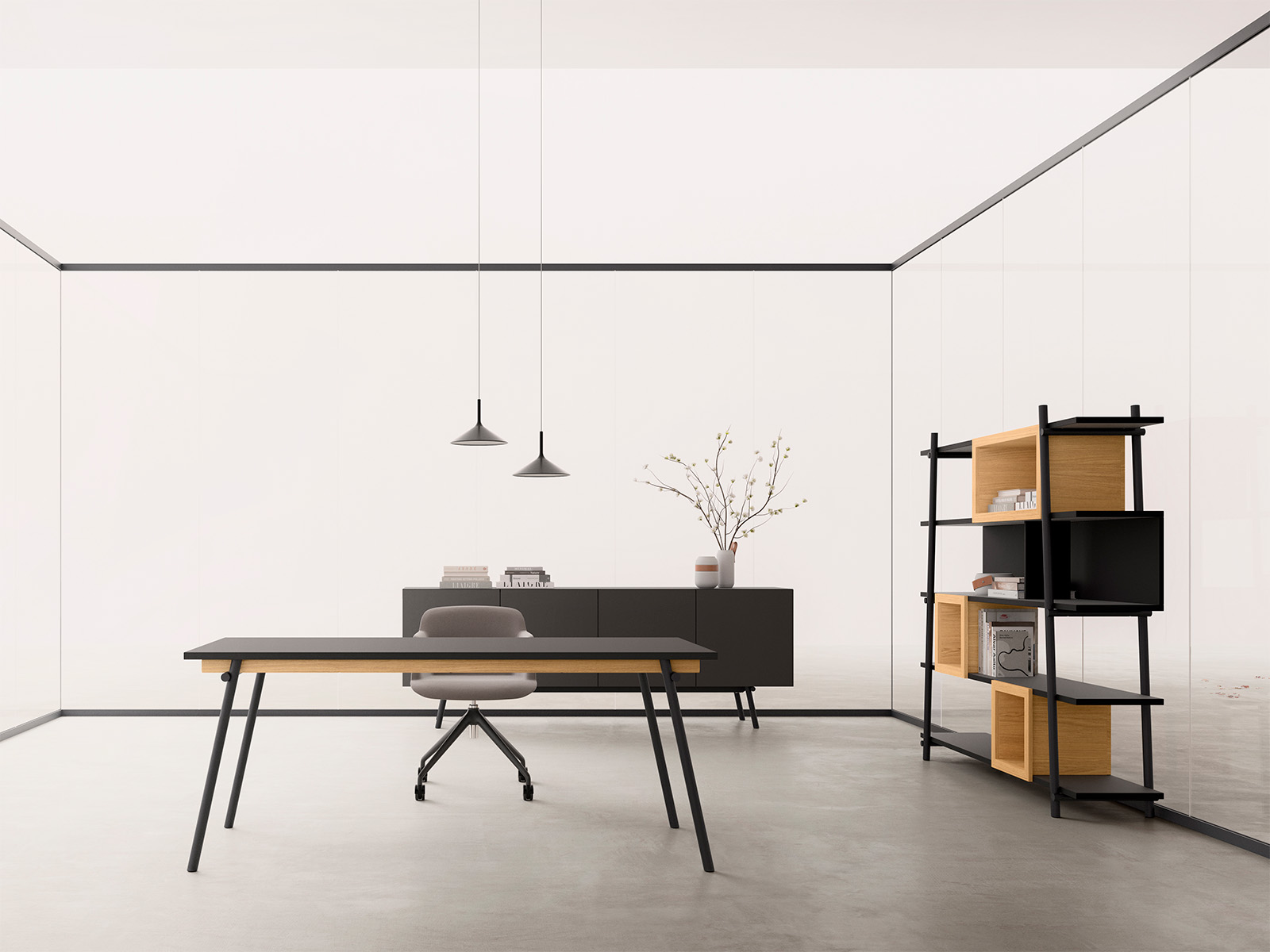 Grâce à son design simple et homogène, les lignes du Knot s'étendent au-delà du mobilier de direction, donnant forme à une collection de tables de réunion, de bureaux opératifs benchs et autres rangements pour vous et vos équipes.