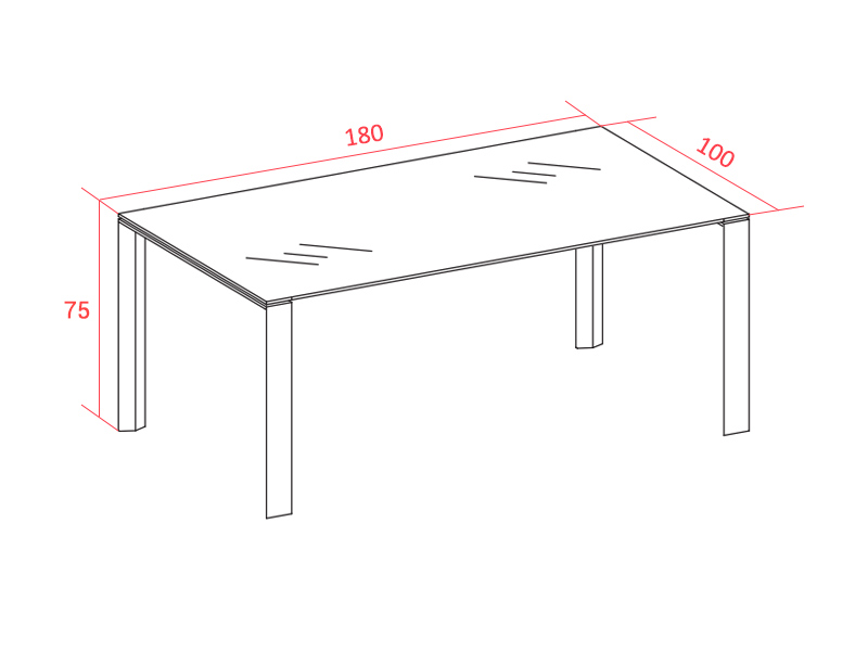 Ce produit offre une grande surface de travail sur son plateau en verre d'épaisseur 10 mm. Situé à 72 cm de haut, il mesure 180, 200 ou 220 cm de large pour une profondeur généreuse de 100 cm.