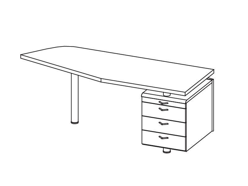 Cette composition Corpus Silver offre un grand confort de travail grâce au grand retour en biais de 100 cm de long. Il dispose d'un caisson proposé ici en 3 tiroirs avec serrure.