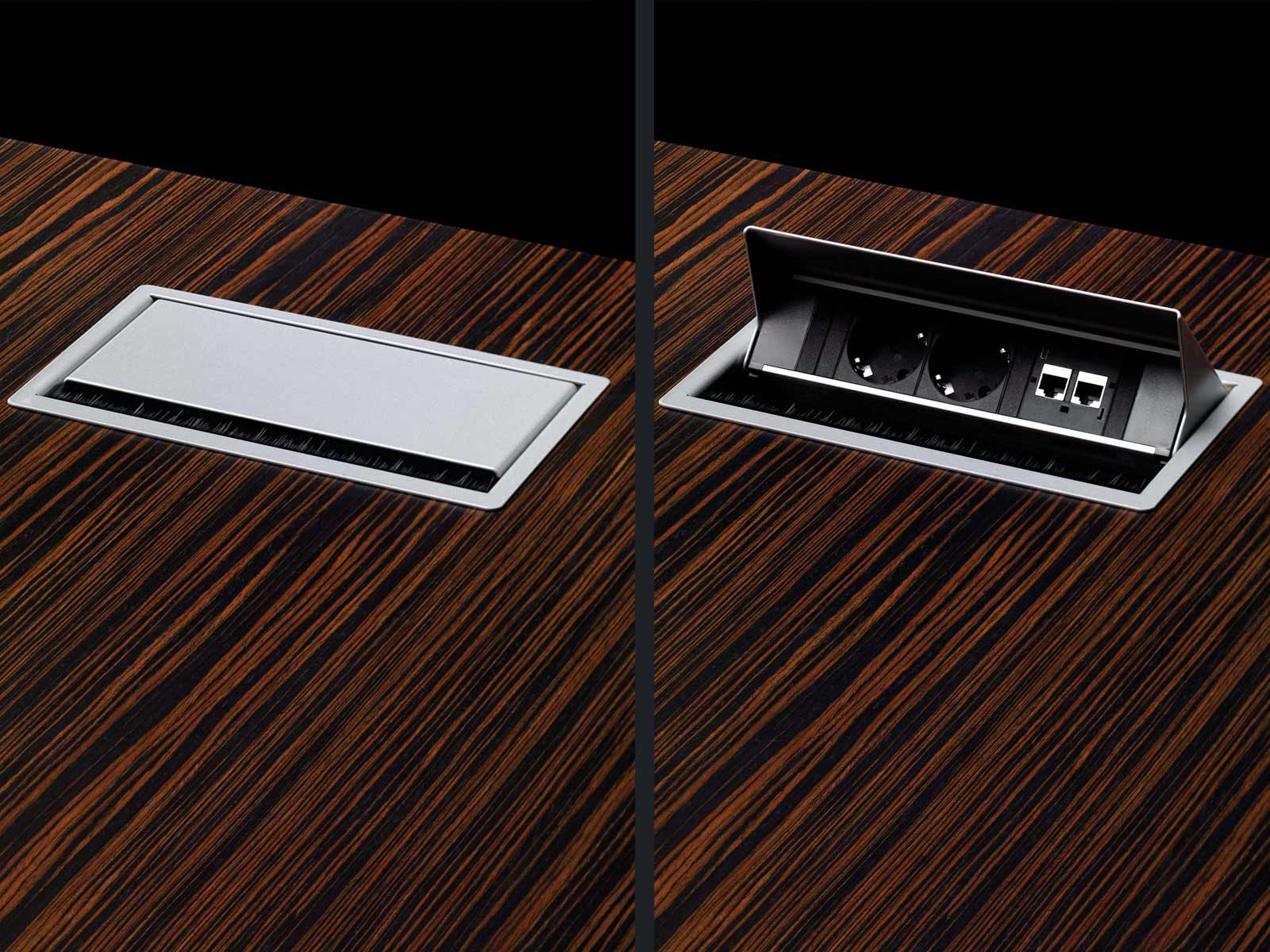 La trappe passe-câbles avec 2 prises courant + 2 RJ45 cat5