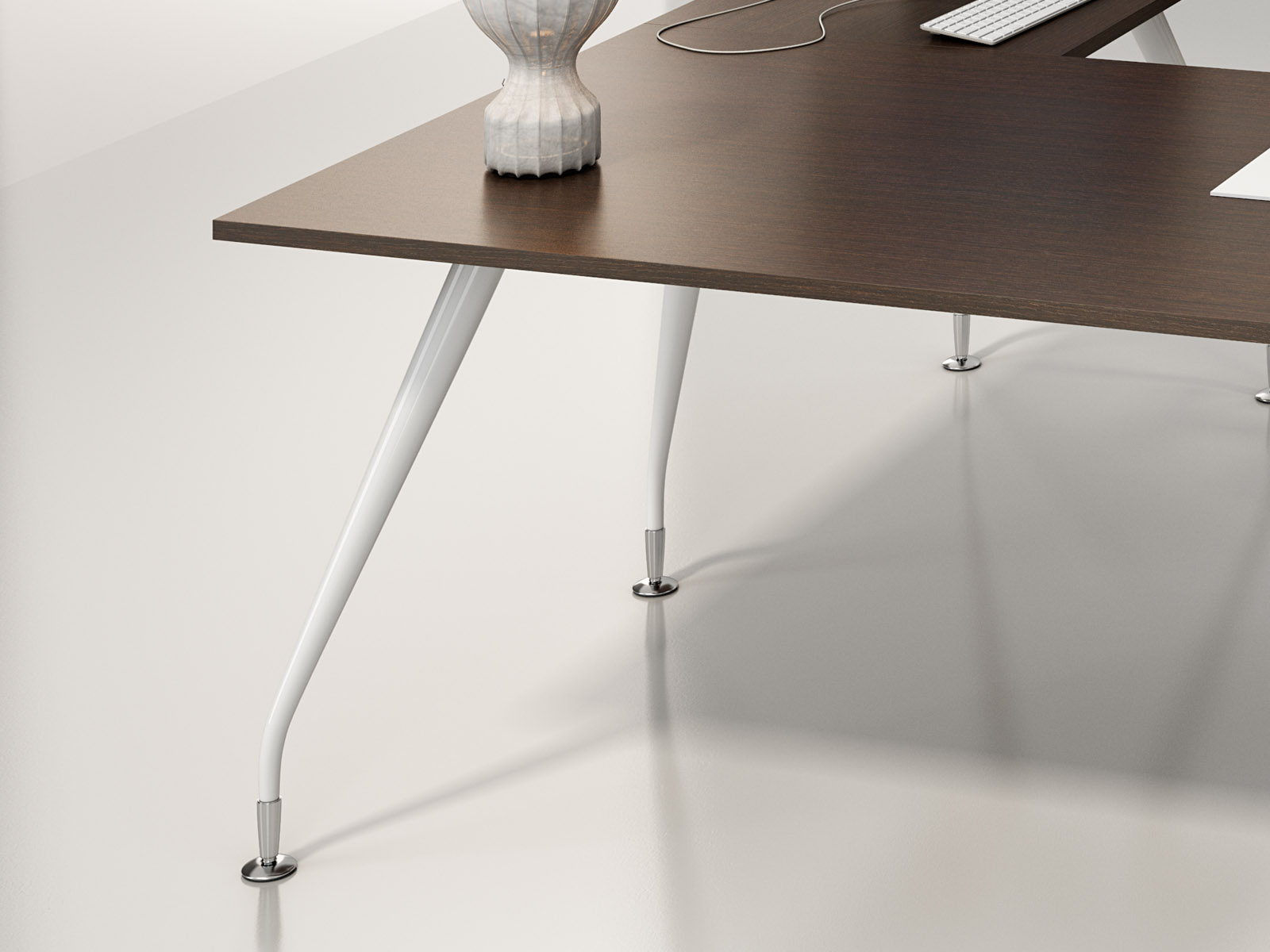 Son plateau de 25 mm d'épaisseur est réalisé en bois mélaminé repose sur une structure comportant 4 pieds coniques.