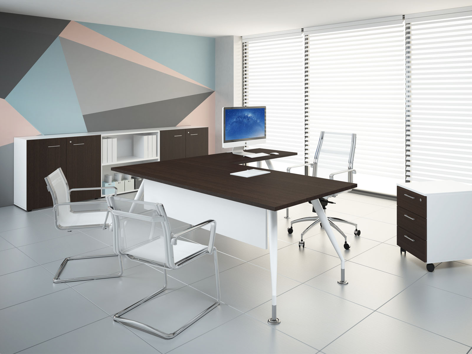 Ce bureau manager au design épuré offre une grande surface de travail grâce au retour droit de 100 cm de longueur.