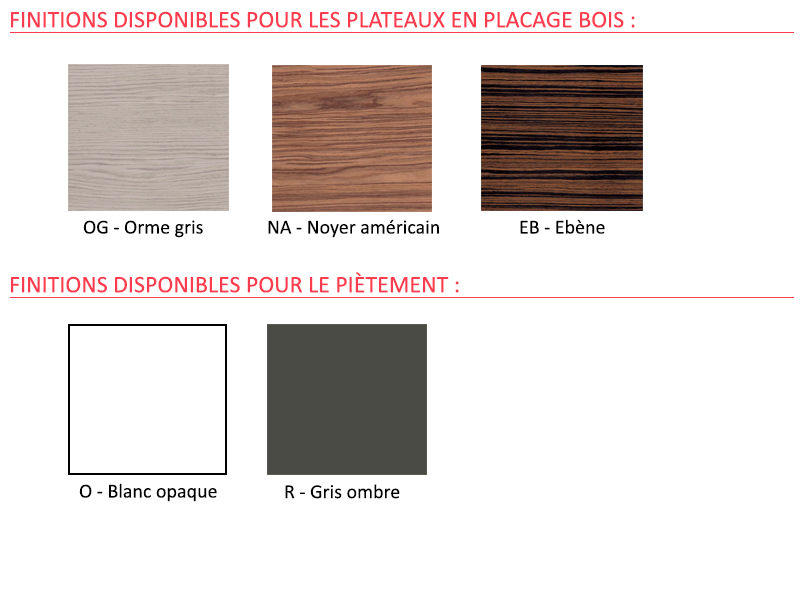 Les pieds sont en acier avec peinture mate à effet "soft touch" anti-marques et anti-rayures. Les coloris disponibles sont gris ombre et blanc opaque. Le piètement a été travaillé de tel sorte qu'il change d'épaisseur selon les angles.