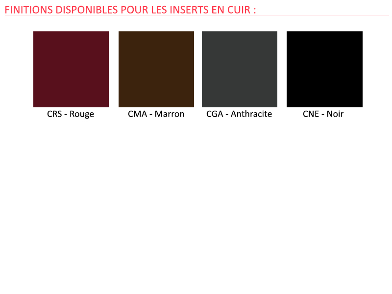 L'insert en cuir, qui sert aussi de sous-main, est en cuir régénéré et possède une couture décorative le long de son périmètre pour plus de cachet. L'insert est disponible en 4 coloris : rouge, marron, anthracite et noir.