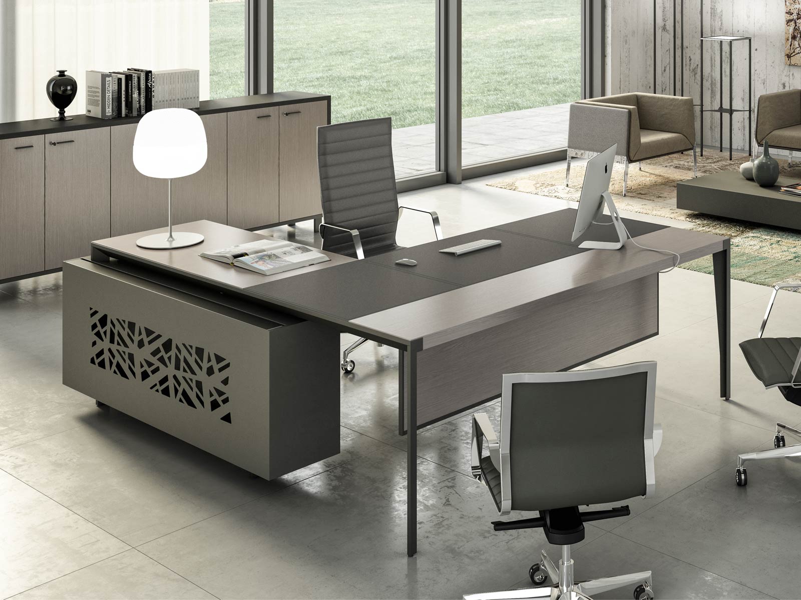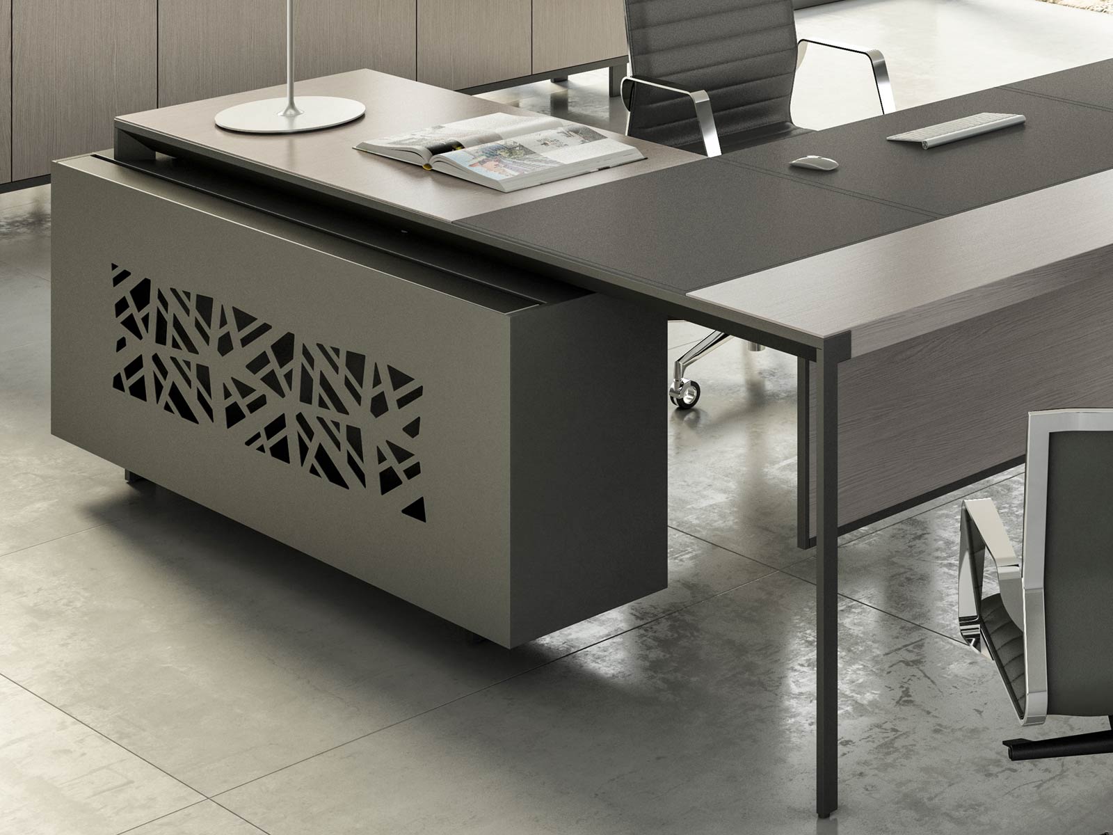 Le bureau de direction Astropol avec inserts en cuir est la combinaison parfaite entre élégance, modernité et fonctionnalité. Ses finitions et sa conception sont bien pensées jusque dans les moindres détails, pour rendre ce bureau de direction unique.